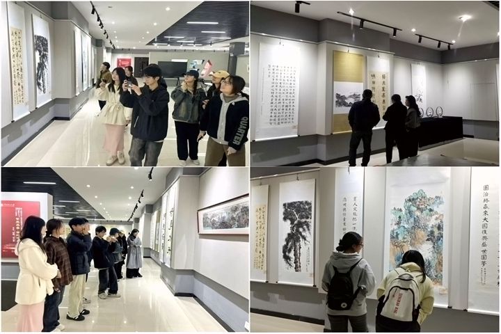 为深入学习贯彻习近平文化思想,提升文化软实力和传统文化影响力,通过艺术的形式,展现国家的发展成就和学校的办学成果,传承和弘扬中华优秀传统文化,激发全校师生的爱国情、报国志,11月18日,学校“繁荣昌盛、世纪传承”书法、绘画、设计展在明德楼公共艺术展览馆开幕。此次展览由校工会主办,教职工书画协会、公共艺术教育中心和建艺学院承办。
