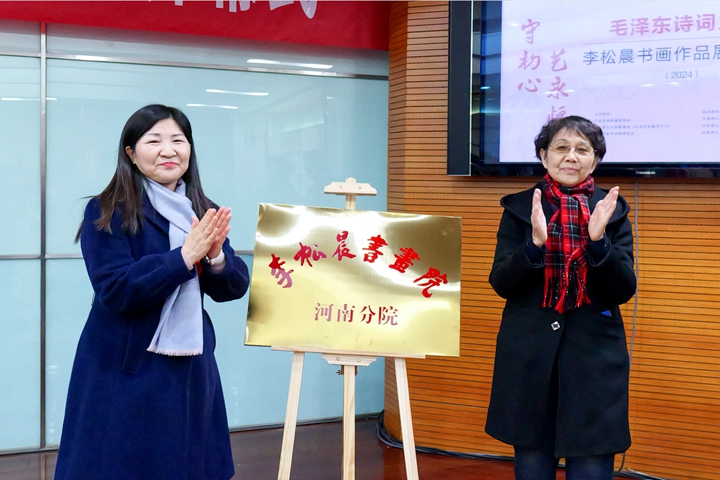 丁亚红和刘代红一同为“北京松晨书画文化研究院”揭牌。
