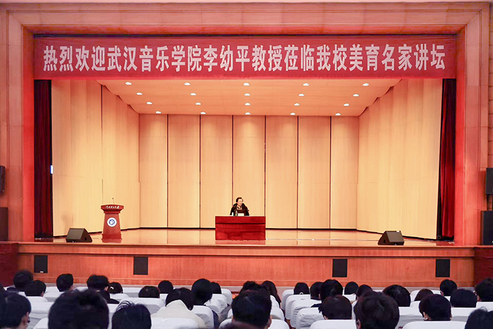 3月7日下午,“礼乐钟磐 中国声音”——武汉音乐学院教授李幼平讲座在我校南校区明德楼音乐厅成功举办。全校600余名师生参与了本次讲座,讲座由公共艺术教育中心主任孙娟主持。