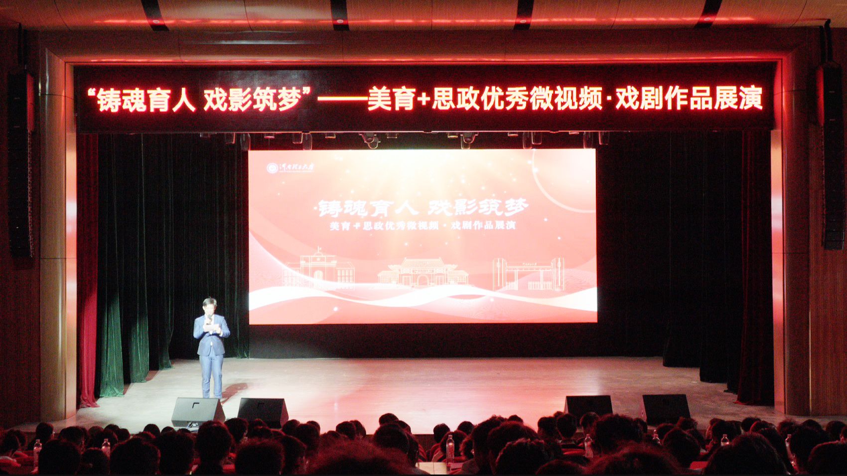 为深入学习贯彻习近平总书记关于美育的重要论述,全面落实立德树人根本任务,3月28日,由公共艺术教育中心和学生工作处共同举办的“铸魂育人,戏影筑梦”美育+思政优秀微视频·戏剧作品展演在我校大学生活动中心小礼堂成功举办,校党委副书记解伟、副校长丁亚红出席。