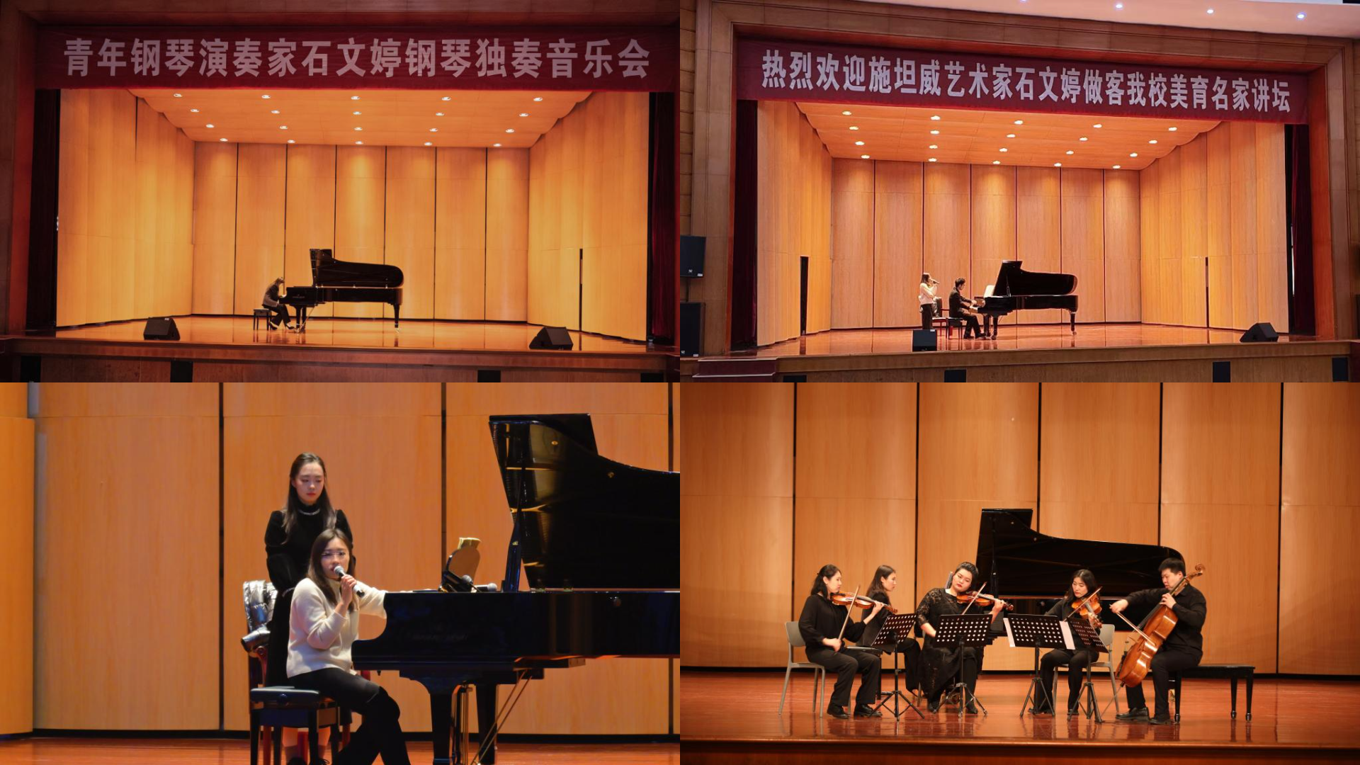 当晚,石文婷又携手余音四重奏室内乐团,共同为师生呈现了一场高水平的钢琴室内乐音乐会。音乐会不仅让师生近距离领略了古典音乐的艺术魅力,更是实施美育教育的重要途径。
