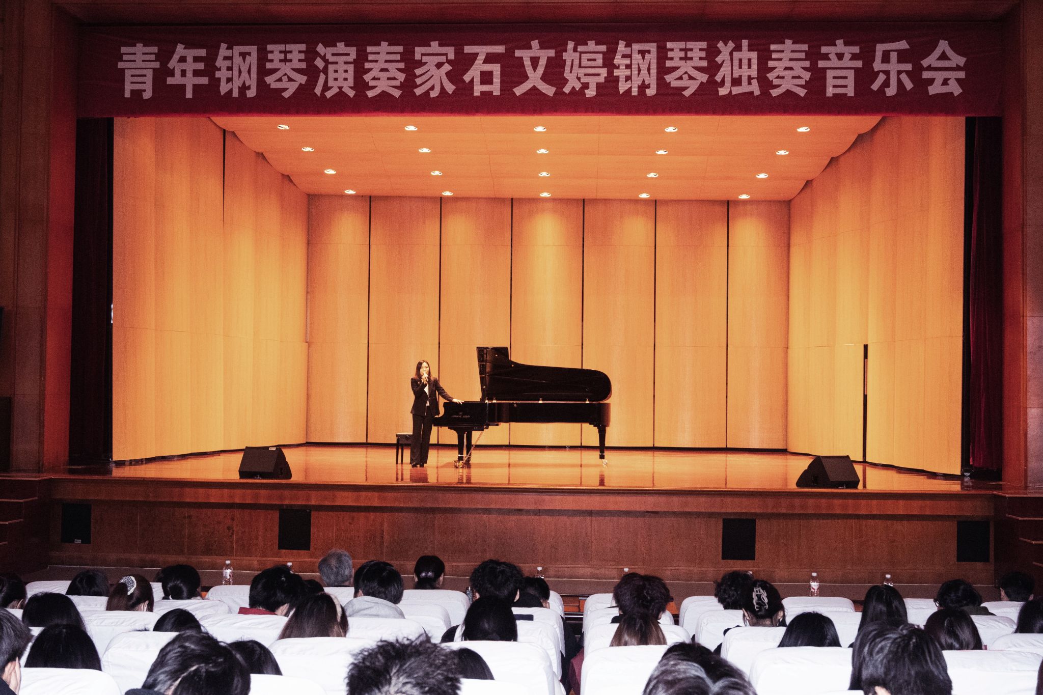 12月18日晚,石文婷钢琴独奏音乐会在南校区明德楼音乐厅顺利举行。石文婷以其精湛的钢琴演奏技术与深邃、全面的音乐讲解,将每一首作品的情感内涵细腻呈现,带领观众领略了从浪漫主义到现代主义钢琴音乐的精神世界。