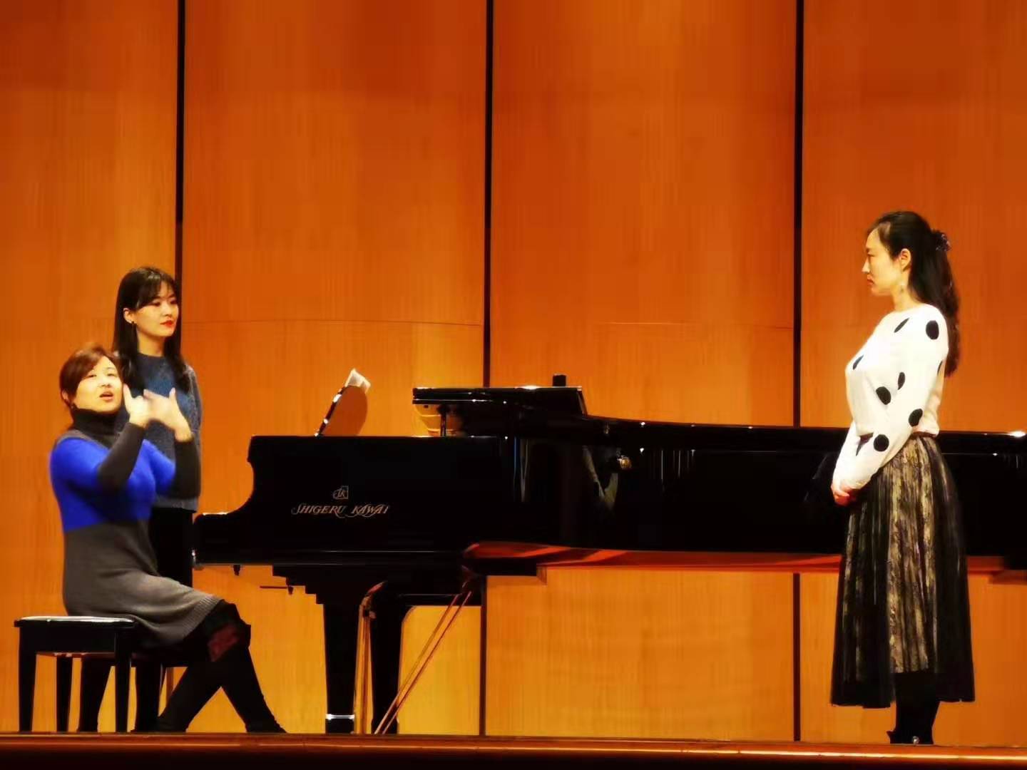 当日下午,音乐学院在明德楼音乐厅举行张佳佳教学音乐会。期间,声乐系薛瑞芝、孟天屹、庞娜、刘婷、董荻等老师,以及钢琴合奏赵静静、仇博、李璟、宁翔良子等老师倾情演出,展示了指导成果。特别是张佳佳与李新现合作的《那就是我》《多情的土地》等曲目,赢得了现场师生的阵阵喝彩与掌声。