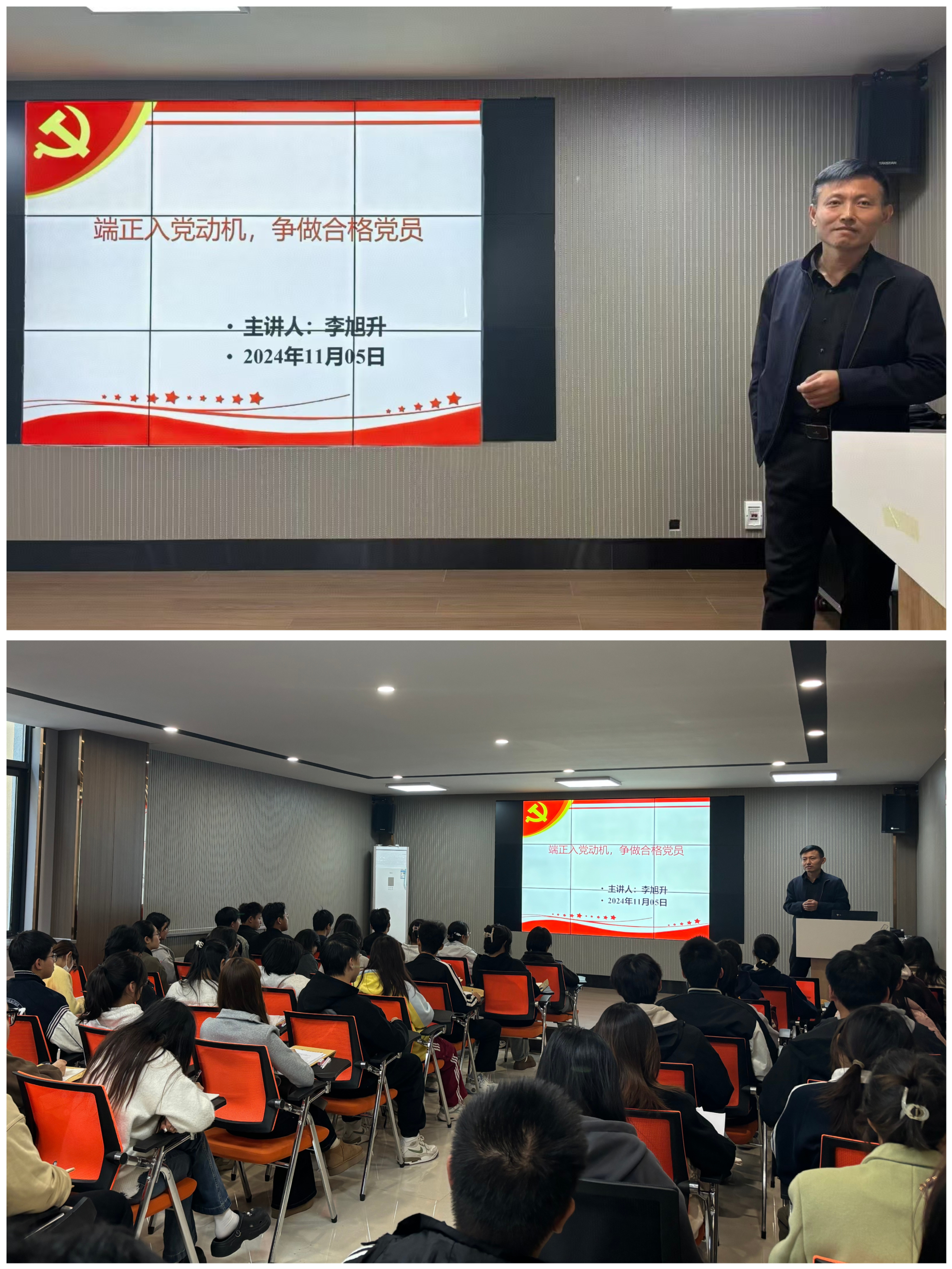 专题培训会《端正入党动机争做合格党员》由诚正书院党委副书记李旭升主讲。会上,李旭升向学员们阐释了"四个问题",即入党的首要条件、正确的入党动机、如何树立正确的入党动机和如何成为合格的大学生党员,围绕这四个问题,李旭升深入浅出,娓娓道来,让同学们明晰入党决心,筑牢入党信念。