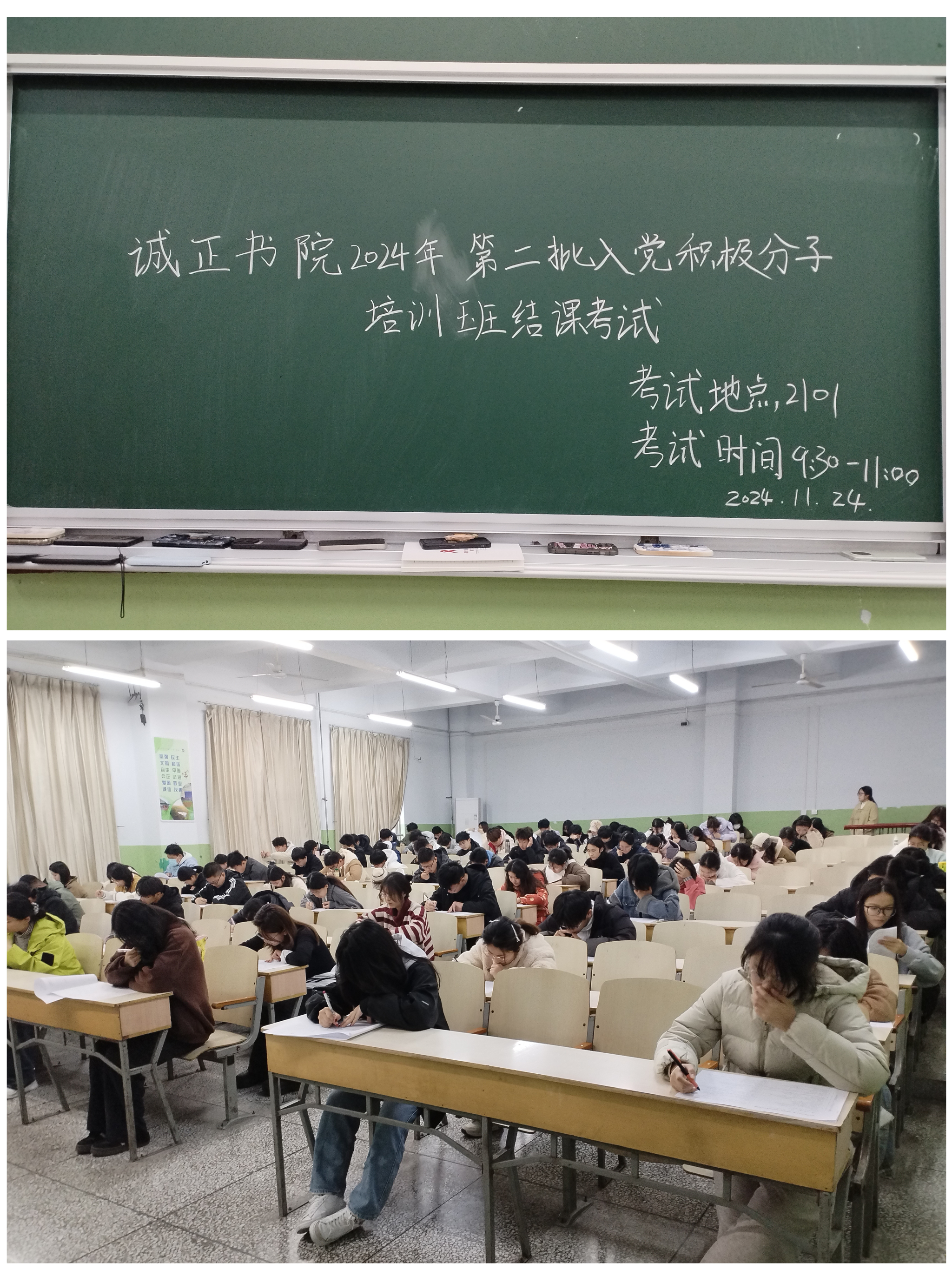为贯彻落实党的二十大精神,提高入党积极分子政治素质和理论学习能力,传承党的优良传统和作风,10月29日至11月19日,诚正书院在书院116功能室举办2024年第二期入党积极分子专题培训会,并于11月24日在教室2101举行第二批入党积极分子培训班结课考试。
