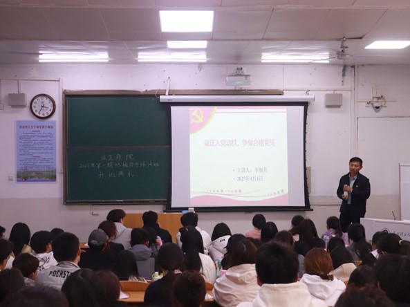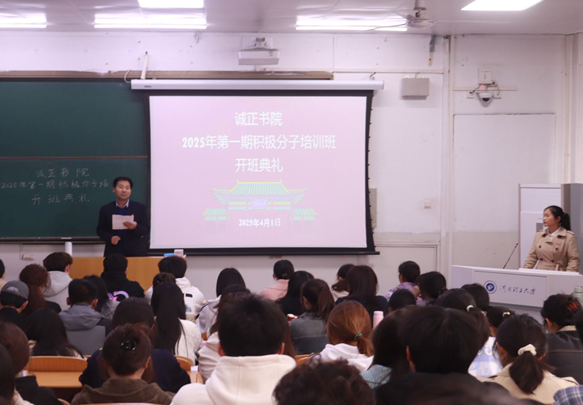 为进一步提高诚正书院入党积极分子的政治素养和党政修养,从源头上把好党员“入口关”,4月1日下午,诚正书院在北校区一号教学楼1301教室举办2025年第一期入党积极分子培训班开班典礼。诚正书院党委书记、院长孙彦,党委副书记李旭升,书院有关老师和第一批入党积极分子140余人参加典礼。