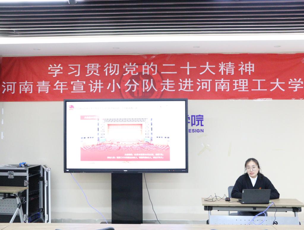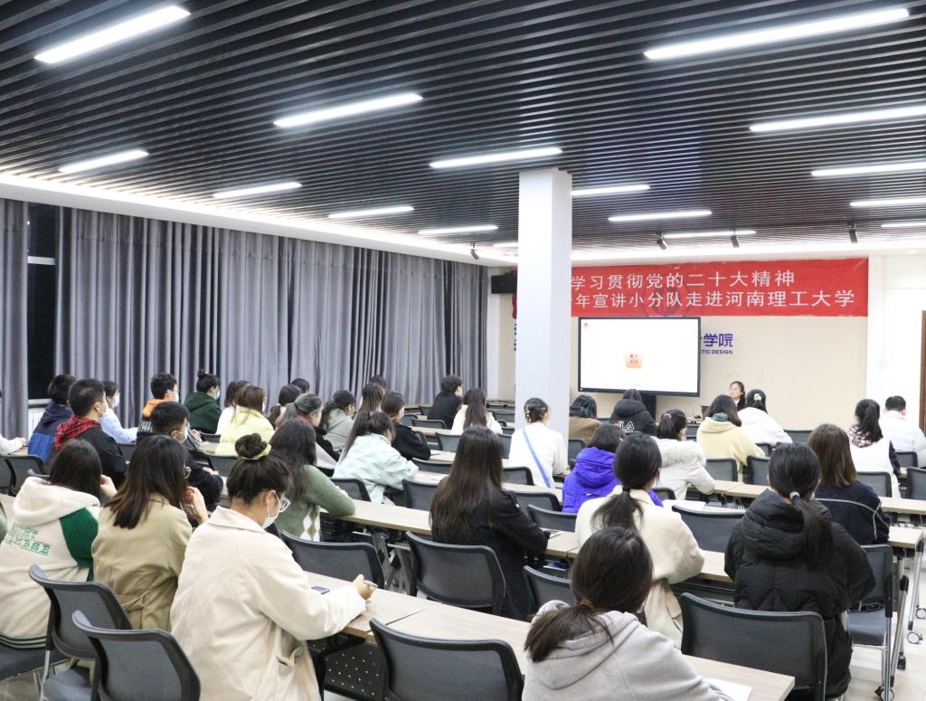 本次宣讲以“中国式现代化,彰显中国精神”为题,从中国共产党的中心任务出发,详细讲述了“什么是中国式现代化”。第一,中国式现代化的探索历程。朱丹向同学们展示中国式现代化的发展,借助习近平总书记的讲话视频详细阐释中国式现代化的内涵。第二,中国式现代化的中国特色。她从人口规模巨大的现代化、全体人民共同富裕的现代化、物质文明和精神文明相协调的现代化、人与自然和谐共生的现代化、走和平发展道路的现代化五个方面宣讲中国式现代化体现的中国特色以及彰显的中国精神——红旗渠精神、小岗精神、闽宁精神、女排精神、塞罕坝精神、大国精神等等。通过对一个个具体案例进行生动形象的讲解,帮助同学们深入学习中国精神,树立爱国意识,坚定理想信念。第三,中国式现代化的本质要求和重大原则。她提到,中国式现代化之所以能够把中国特色鲜明写在自己的旗帜上,之所以能在中国创造经济快速发展和社会长期稳定的两大奇迹,归根结底在于我们的现代化是中国共产党领导的社会主义现代化。只有走好中国式现代化道路,我们才能全面推进中华民族伟大复兴,为世界发展贡献中国力量。会议最后,她再次告诫同学们要牢记使命,树立远大理想,争做担当民族复兴大任的时代新人。