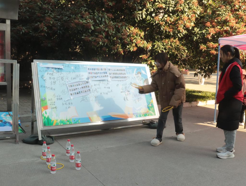 活动准备期间,通过在校园的各个公示栏张贴宣传海报,扩大宣传范围,提高活动知名度;同时明确各位志愿者的职责,安排活动场地及准备相关道具。活动伊始,各位志愿者耐心地组织同学们浏览普法知识宣传板,同时引导同学们开展五环之歌、疏而不漏、圆圈正义和法律盲盒四种趣味游戏来激发同学们的兴趣,提高同学们的参与感, 活动结束后,各位志愿者们清点活动物品并打扫场地卫生,同时对活动进行复盘,总结不足之处,并加以改进。