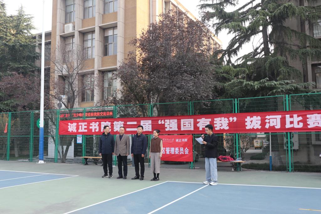 “请党放心,强国有我”。为营造诚正书院浓厚体育氛围,引导大学生德智体美劳全面发展,提高他们的团队精神和协作能力。11月14号下午,诚正书院于北校区举办第二届“强国有我”拔河比赛。建艺学院党委书记张建新、文法学院党委副书记郑伟、诚正书院党委副书记李旭升以及诚正书院全体辅导员参加开幕式,诚正书院200余名学生参加此次拔河比赛。