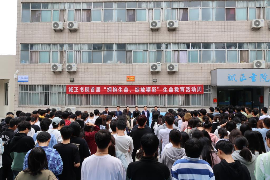 为进一步增强大学生对生命的认识,了解生命的意义,引导他们更好地管理自身生命、关爱他人生命,2023年10月18日,诚正书院联合建艺学院、文法学院在北校区开展首届“拥抱生命,绽放精彩”生命教育活动周启动仪式。学生工作部(处)部(处)长陈昊、校团委书记支光辉、建艺学院党委书记张建新、诚正书院党委书记、院长孙彦、文法学院党委副书记郑伟受邀出席,诚正书院师生代表240余人参加启动仪式,仪式由诚正书院党委副书记李旭升主持。