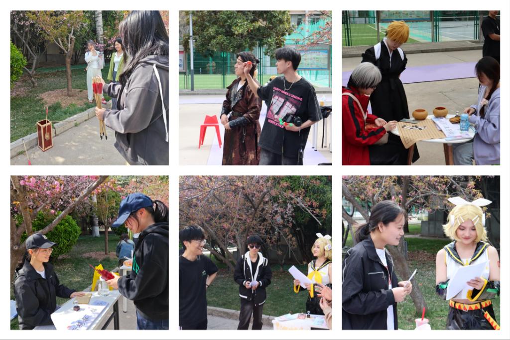 北校区学生们或是参与制作书签感受手工DIY的快乐,或是投身文化游戏中,通过投壶、下棋、你画我猜等,感受古今各式休闲游戏的趣味。此外,本次文化节将古风与现代相结合,众多的汉服、洛丽塔、Cosplay更是形成了一道亮丽的风景线,同学们以独特的方式表达对生活的热爱,展现当代大学生文化自信与青春活力。