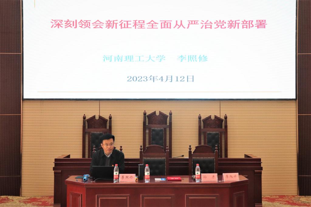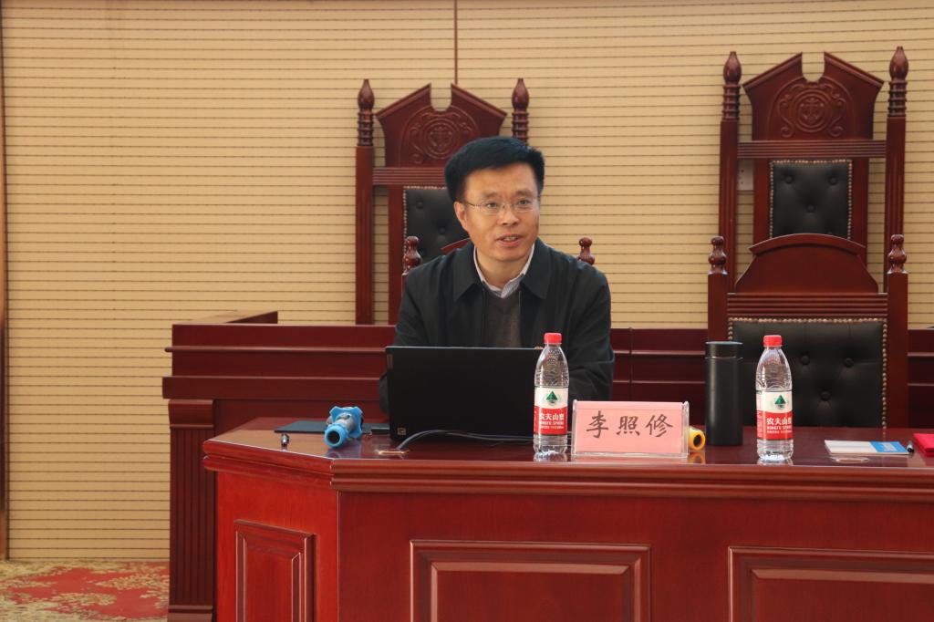 4月12日上午,诚正书院于北校区模拟法庭举办清廉书院建设首场报告会。校纪委副书记李照修受邀作题为“深刻领会新征程全面从严治党新部署”的报告,报告会由诚正书院党委副书记李旭升主持。