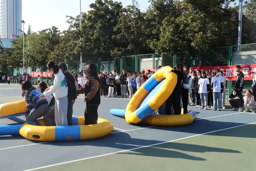 “同舟共济”活动中,同学们争分夺秒,你追我赶,现场气氛热烈;“龟兔赛跑”比赛中,各队口号响亮,步伐统一,成功抵达终点;“步步高升”项目中,各队成员协作得当,发挥团队智慧,在活动现场筑起了层层高塔。比赛过程充满欢声笑语,加油呐喊声不绝于耳。同学们团结互助,配合默契,充分发挥团队协作精神,积极完成所有参赛项目,极大凝聚了集体力量,增进了彼此间的友谊。
