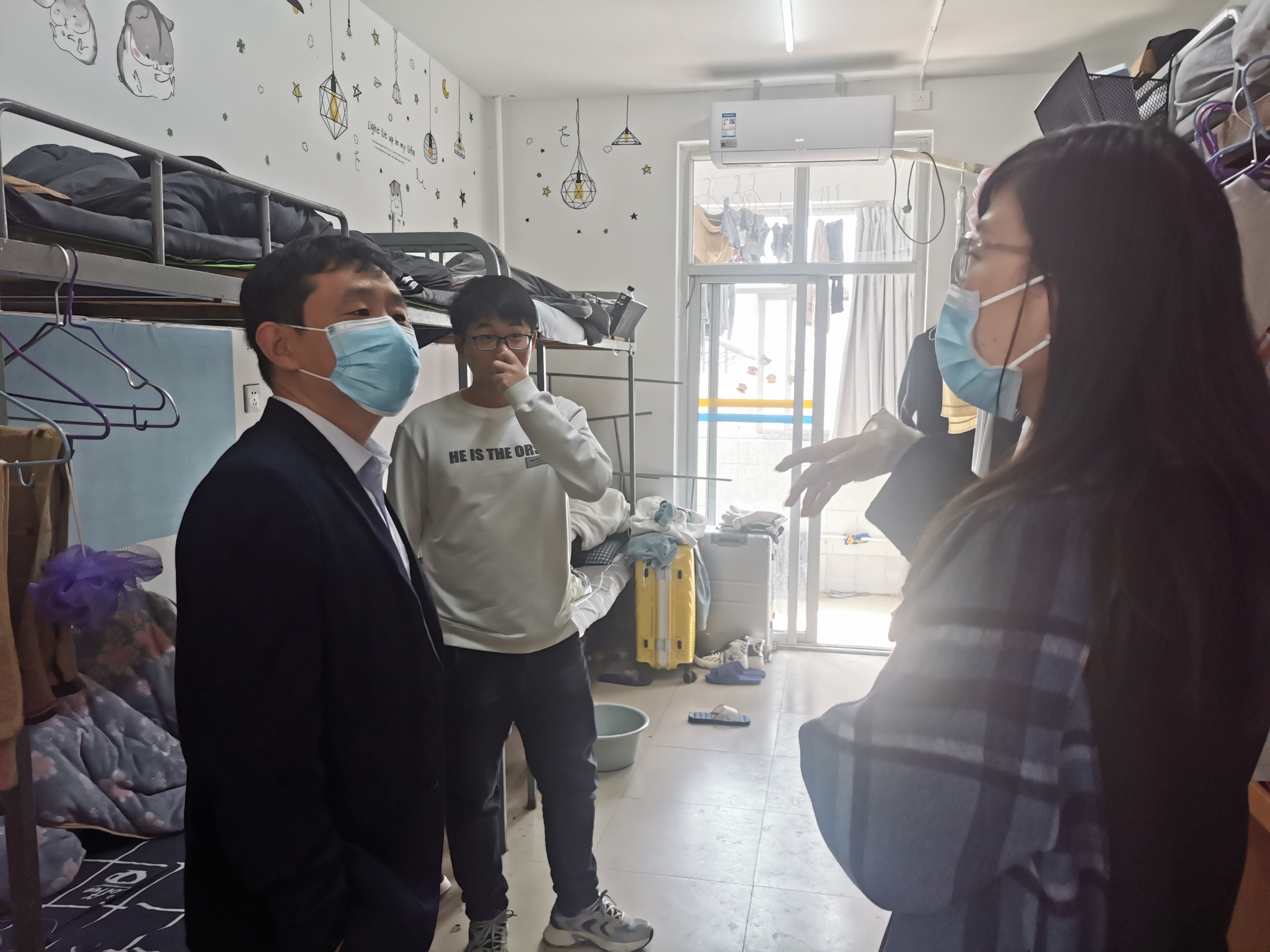 4月4日——4月9日,诚正书院(文法学院)党委书记兼院长李慧敏、副书记李旭升,文法学院院长冒建华、副院长谢珺、曹爽分别带领辅导员教师走入男生、女生宿舍,与学生们亲切交谈。详细询问在校学习、就餐、生活等情况,并针对同学们的疑问和诉求进行了详细解答,嘱咐同学们要遵守学校疫情防控的要求,注意宿舍卫生及用电安全,做好个人防护,积极调整心态,充分利用书院共享空间资源,安心学习,加强体育锻炼,如遇到困难要及时反馈,书院将会尽快协调解决,为同学们排忧解难。