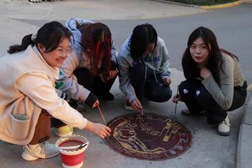 为庆祝党的二十大胜利召开,美化校园环境,丰富校园文化,做好“任责杯”团支部设计大赛,展示青年的活力与创造力,10月18日下午,诚正书院设计2206班同学在书院门前组织井盖图案设计和创意涂彩活动。此项活动得到了书院领导的重视和支持。