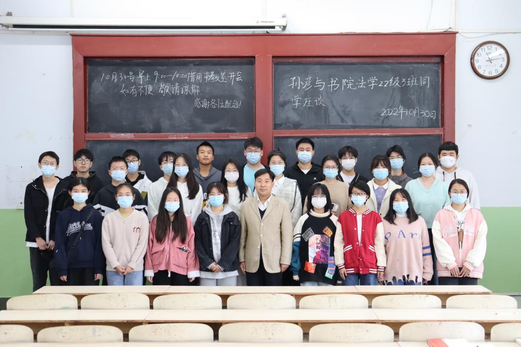 为加强书院思政教育建设,打造和睦融洽师生氛围,10月30日上午,诚正书院党委书记兼院长孙彦与法学2203班同学在北校区2201教室进行座谈,就同学们的学习、工作与生活,以及书院的建设、发展进行了深入交流。