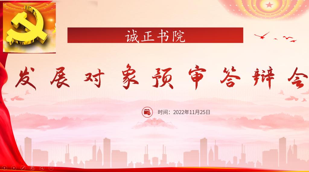此次发展对象预审答辩会的召开,有利于帮助发展对象进一步坚定理想信念,增强党性修养,充分体现出诚正书院党委不断加强党建工作,严格党员队伍建设标准,规范党员发展工作程序,有力推进了诚正书院基层党建工作的顺利开展。
