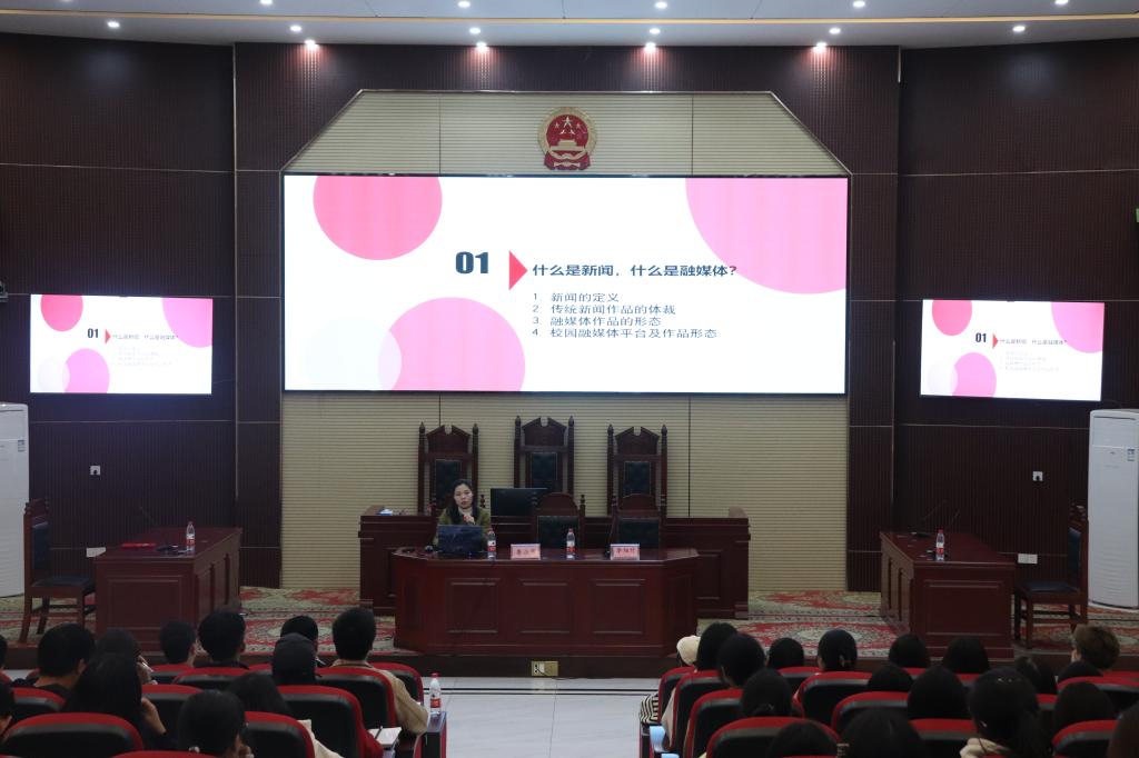 11月5日下午,诚正书院在北校区模拟法庭举办网络育人导师聘任仪式,校新媒体管理科科长鲁小茜老师受聘为书院网络育人导师并作题为《融媒体新闻作品创作》主题讲座。诚正书院党委副书记李旭升主持聘任仪式,书院140余名学生骨干参加此次仪式。