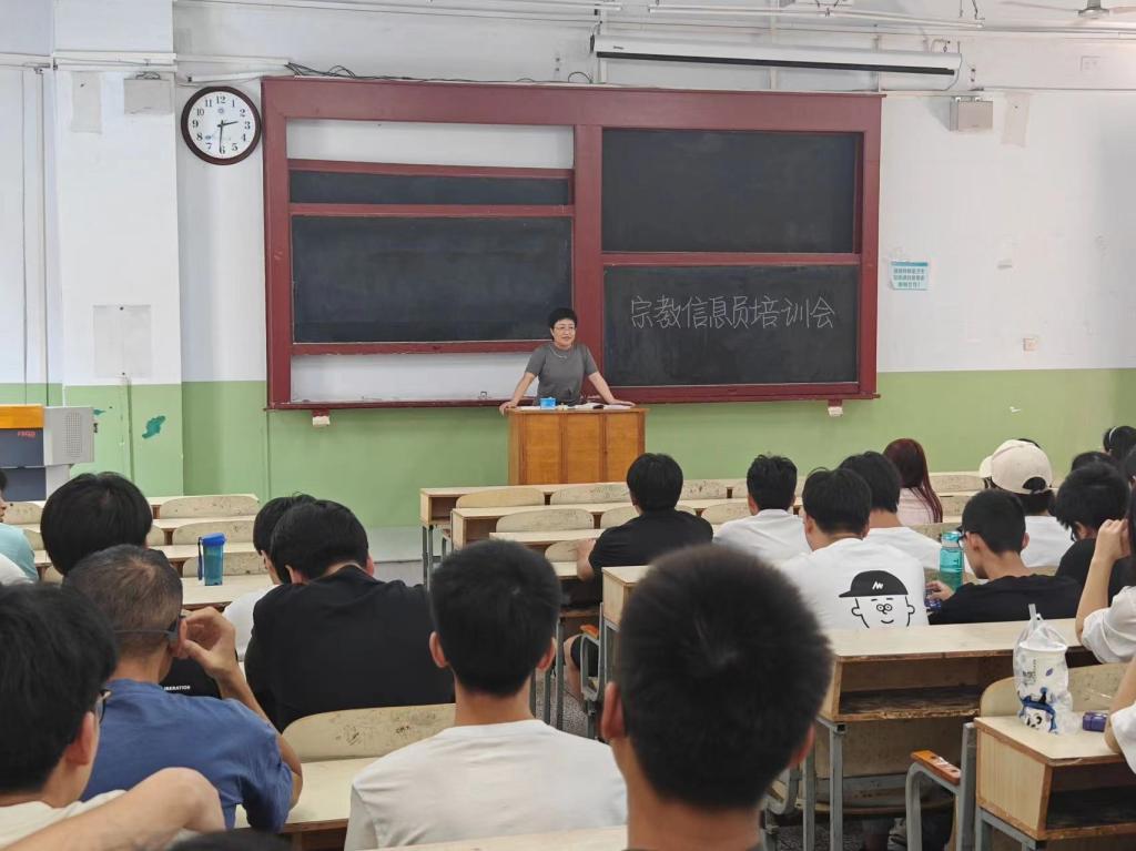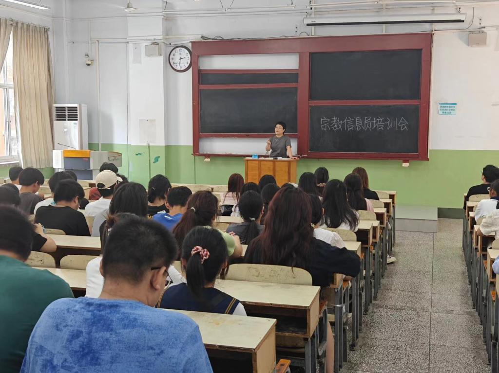 为深入贯彻习近平总书记关于加强和改进民族工作的重要思想,贯彻落实中央民族工作会议精神,教育引导广大师生牢固树立中华民族共同体意识,加强师生爱国情怀,诚正书院于9月22日下午在北校区2203教室举办宗教信息员专题培训会,会议由22级辅导员李志华主持,22、23级全体宗教信息员参加。