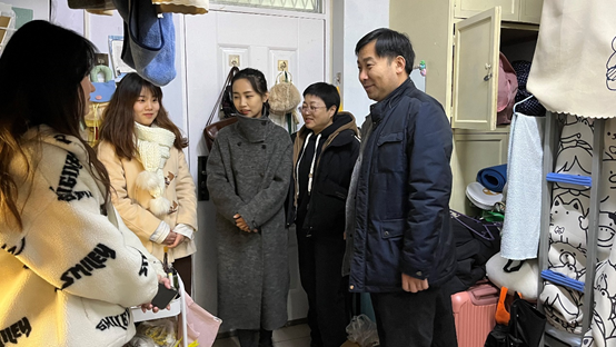 走访过程中,孙彦询问了学生的复习进度及未来学习规划,他强调,虽然本学期即将结束,但是依旧不能松懈,要合理规划自己的空余时间,同宿舍同学之间要相互帮助、相互激励,争取期末考试取得好成绩。他耐心叮嘱同学们在寒冬之际,要注意添衣保暖,身体是革命的本钱,叮嘱各位同学养成良好作息习惯,一日三餐按时吃饭,多锻炼身体,以防换季感冒生病。