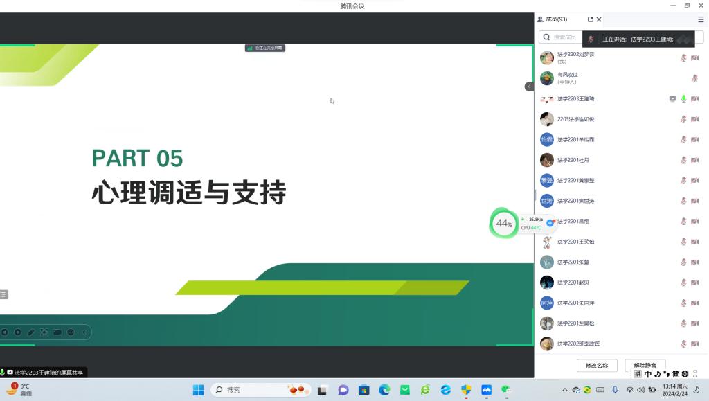 为增强学生的自我保护意识,提高学生应对突发情况的能力,2月24日-2月25日,诚正书院各班级在线召开了新学期安全教育主题班会。会议由各班辅导员统筹主导、主持,全院1000余名学生积极参会。