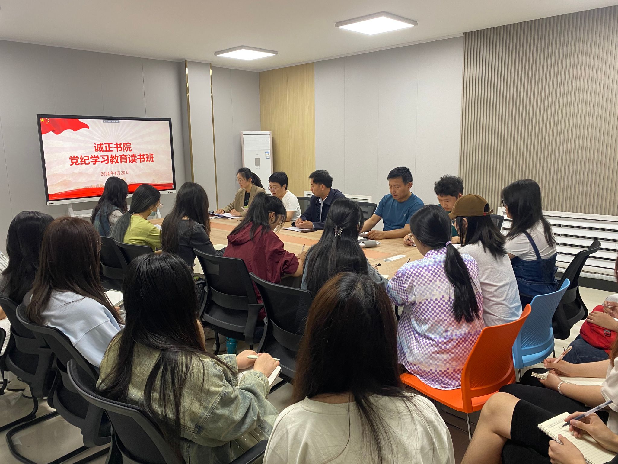 4月28日上午,党纪学习教育读书班在诚正书院正心会议室举办。此次读书班包括专题党课、集体研讨、个人自学三部分,书院党委书记、院长孙彦作专题党课讲授。书院全体党员干部参会。