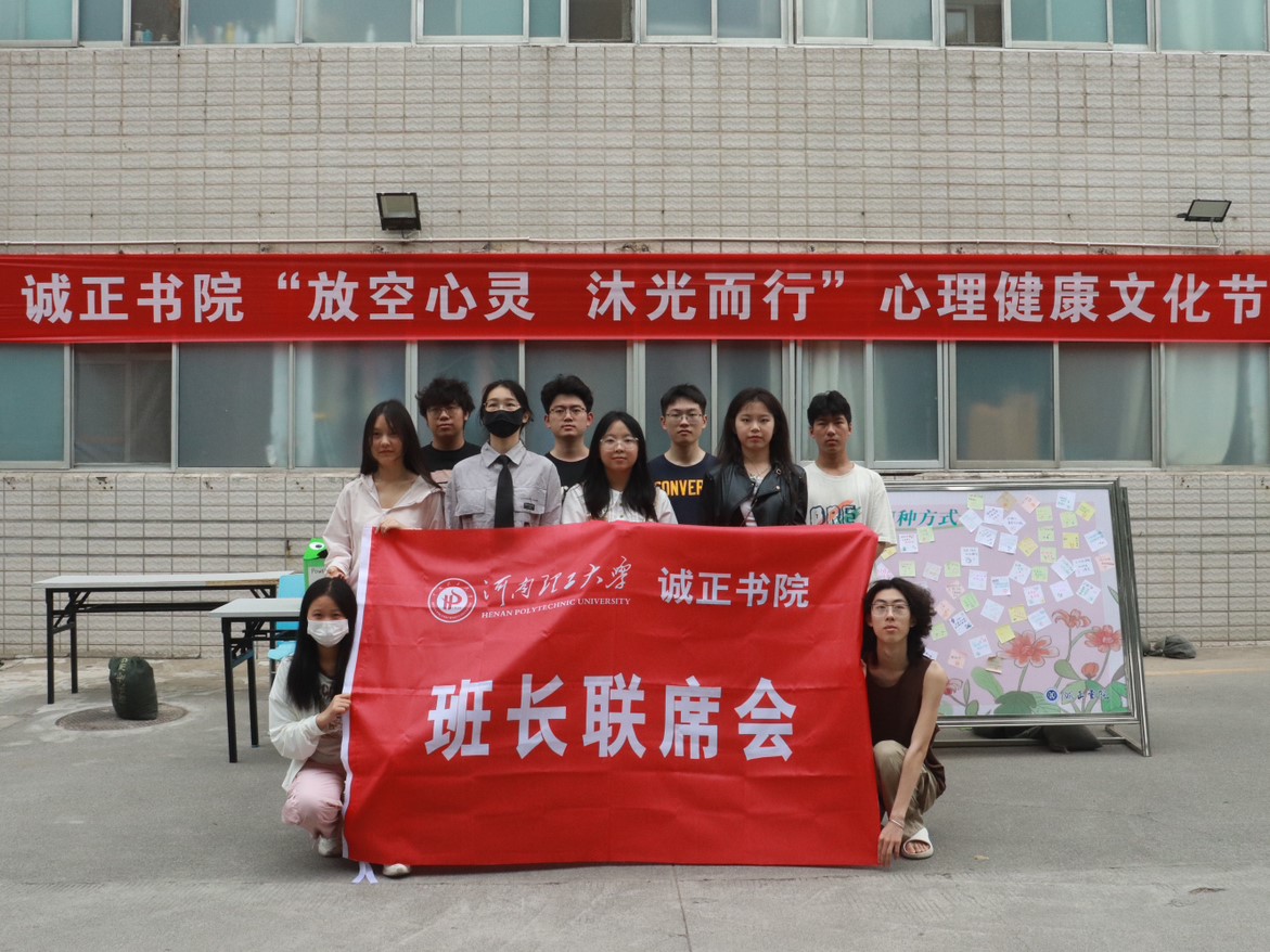 为了提高同学们对心理健康的认识,引导同学们接纳自我、缓解压力、放松心情,促进自身的全面发展,5月25日,由诚正书院学生会、班长联席会联合承办的“放空心灵,沐光而行”心理游园会于诚正书院楼前举办。书院围绕此次主题,组织开展了众多集学习性、趣味性、体验性于一体的游戏活动。