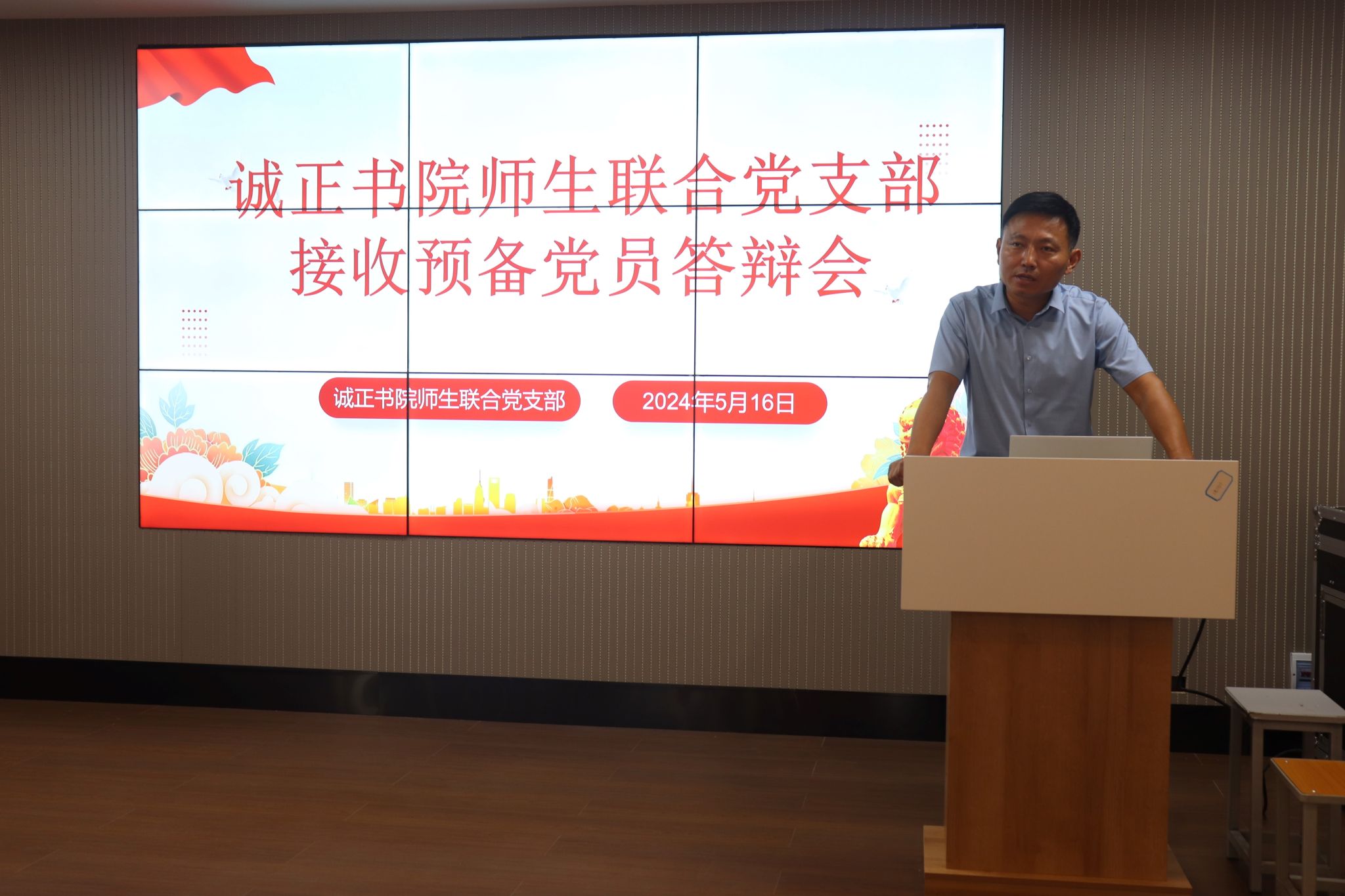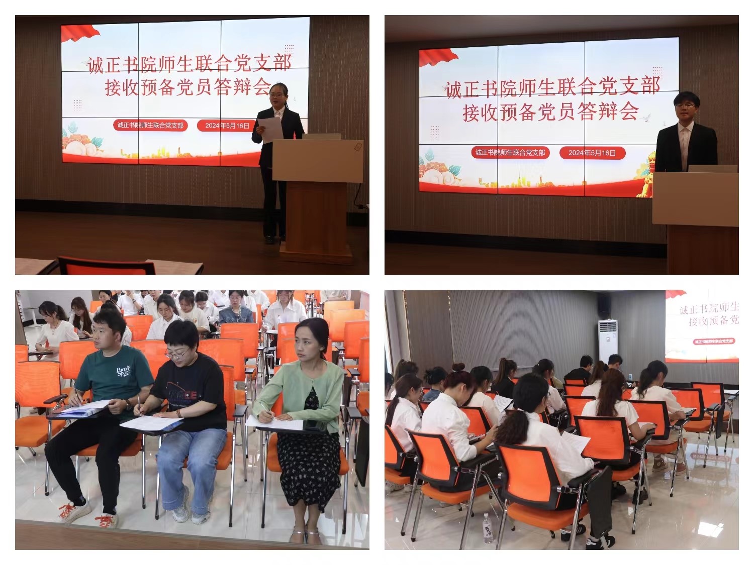 5月22日,诚正书院师生联合党支部在书院116活动室举行了预备党员考试及预答辩会。诚正书院22级辅导员李志华主持,党委副书记李旭升、书院部分教师及党员发展对象共计40余人参加。