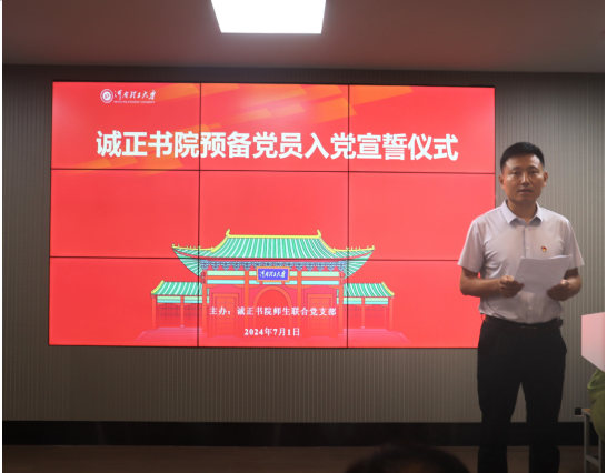 为增强党员的党性修养、历史使命感和社会责任感,7月1日上午,诚正书院党委以迎接建党103周年为契机,在书院多功能活动室举行新党员入党宣誓暨老党员重温入党誓词大会。会议由诚正书院党委副书记李旭升主持,诚正书院党委全体教职工党员及41名新发展的预备党员参加宣誓大会。