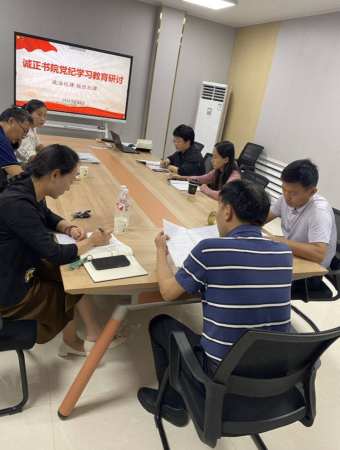 为进一步加强党性教育和纪律建设,6月4日,诚正书院党委在正心会议室围绕党的“政治纪律、组织纪律”、“廉洁纪律、群众纪律”分两次展开集中学习研讨,此次学习采取集中自学、集体研讨、总结发言的“三段式”方式进行。会议由书院党委书记、院长孙彦主持,书院全体党委委员参加会议。