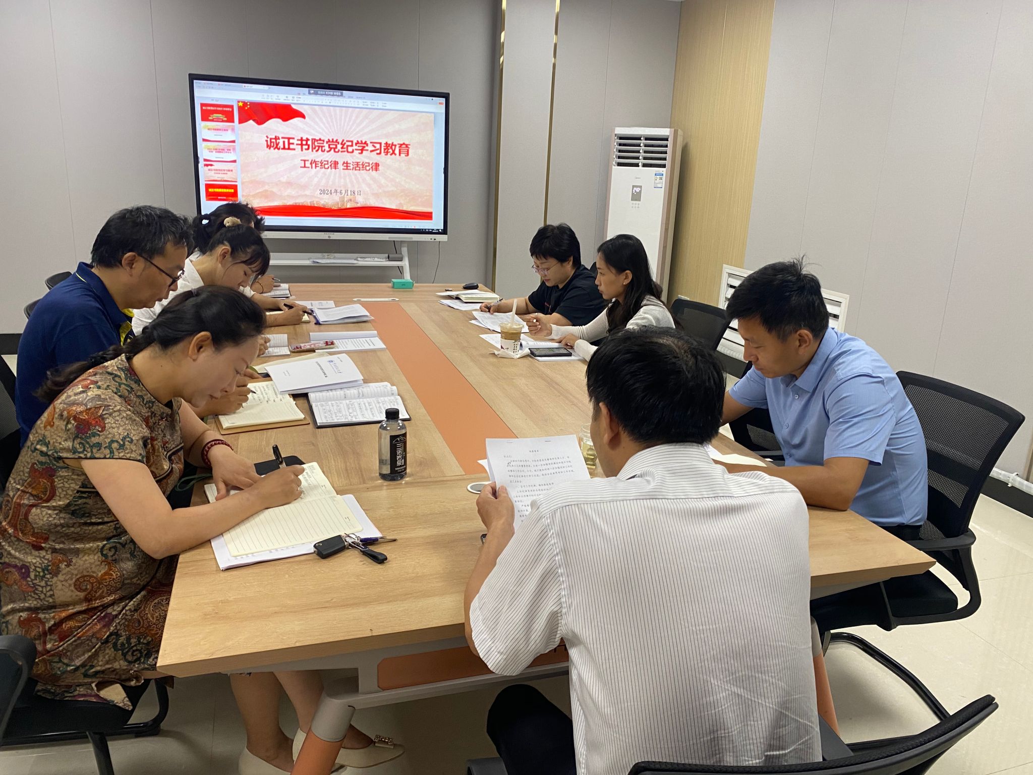 6月18日,诚正书院党委在正心会议室围绕党的“工作纪律和生活纪律”两项内容,开展《中国共产党纪律处分条例》的深入学习教育活动。