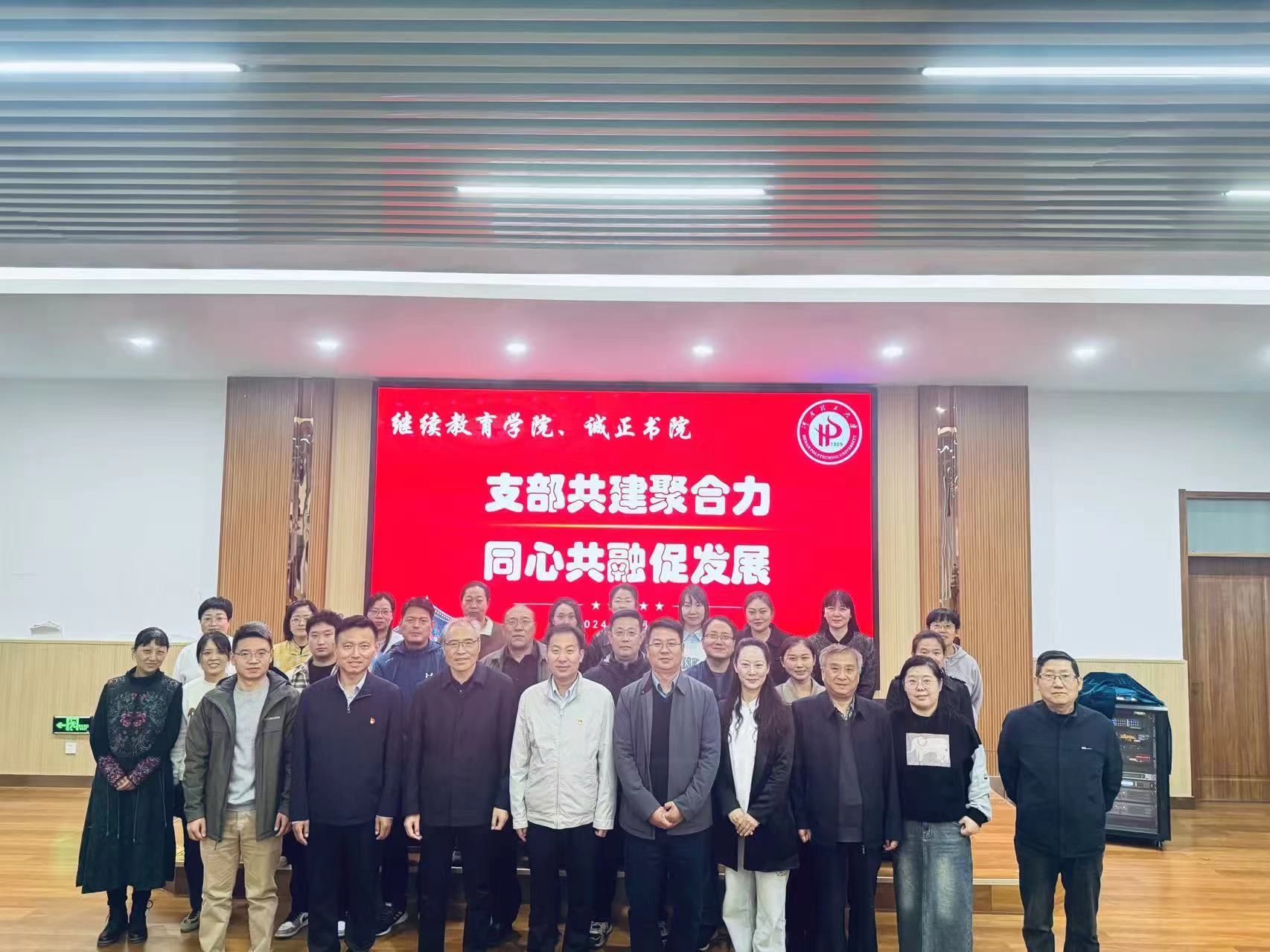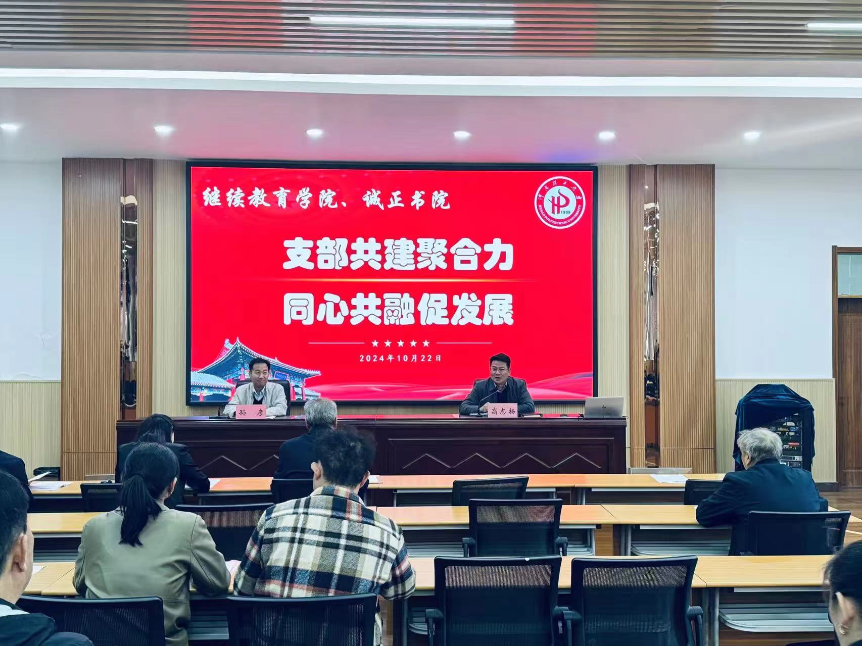 本次活动由继续教育学院党总支书记高志扬的主持。会议伊始,诚正书院机关教工党支部联合继续教育学院党总支一同学习了习近平总书记在国家勋章和国家荣誉称号颁授仪式上的讲话。会上,双方党支部就如何开展结对共建及党建工作进行了经验交流,继续教育学院党总支书记高志扬和诚正书院党委书记、院长孙彦分别介绍了各自党建工作开展情况及特色做法,为支部共建打下了坚实的基础。为了更好地学习宣传贯彻党的二十届三中全会精神,活动当日还特邀校宣讲团专家何平,进行了党的二十届三中全会精神专题宣讲,深刻认识党的二十届三中全会的重大意义。最后,继续教育学院党总支、诚正书院机关教工党支部全体教师重温入党誓词,重忆入党初心。