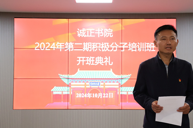 为提高入党积极分子的政治理论水平和基本素养,10月23日上午,诚正书院在116多功能室举行了2024年第二期入党积极分子培训班开班典礼。诚正书院党委书记、院长孙彦,党委副书记李旭升,师生联合党支部书记李志华,入党积极分子培训班班主任刘娟娟以及书院第二批入党积极分子参加典礼。典礼由李旭升主持。