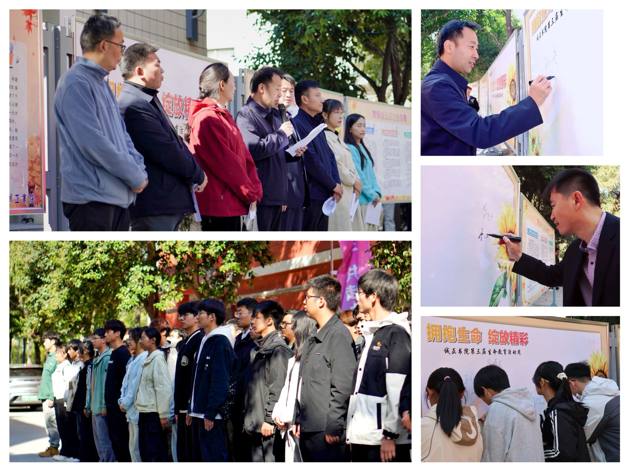 启动仪式在庄严的河南理工大学校歌奏唱中拉开帷幕。随后,孙彦致辞。他强调,生命教育是书院教育的重要组成部分,通过生命教育活动,引导学生树立正确的生命观,珍惜生命、热爱生活,实现自我价值。接着,王新建宣读《诚正书院第三届“拥抱生命,绽放精彩”生命教育活动周活动方案》,希望同学们能够深刻理解生命教育的重要意义,引导同学们对生命进行正确的认知与理解,促使他们敬畏生命、珍惜生命。在活动现场,学生代表朗诵的《生如夏花》展现出对生命精彩的歌颂。最后,李伟亮宣布诚正书院第三届“拥抱生命,绽放精彩”生命教育活动周正式启动。与会领导和学生代表上台签字,为此次生命教育活动周启动仪式画上了圆满的句号。