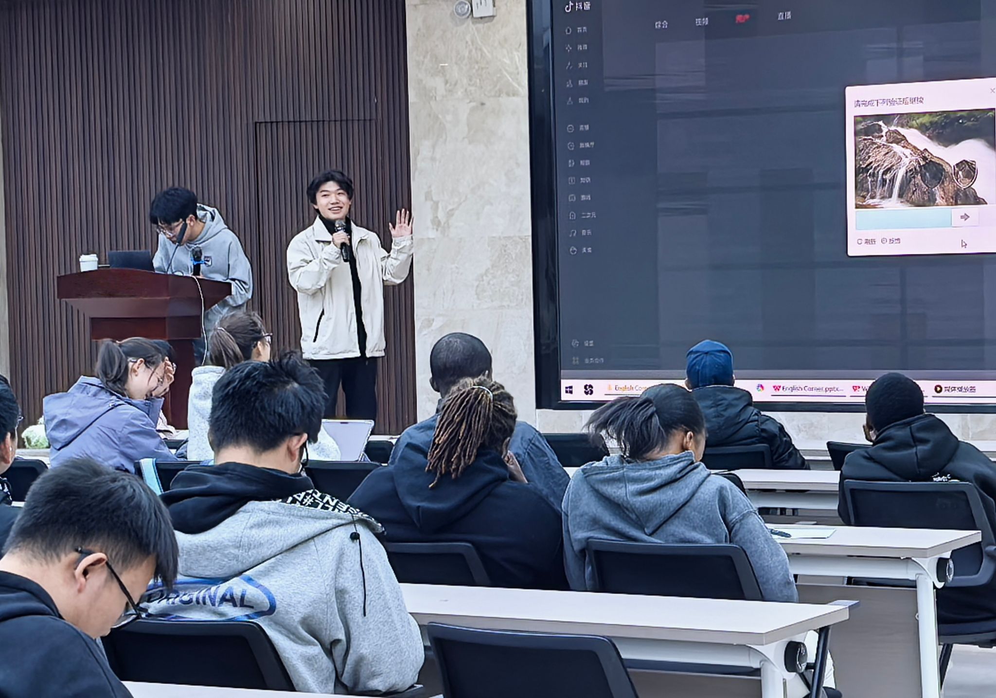 活动伊始,主持人赵振翔通过举例介绍网络视频种类和特点,让学生深入了解活动内容,接着介绍喜爱的视频博主并搭配视频解说,引发了学生对网络媒体的思考。交流环节采用“击鼓传花”形式开展互动问答,学生分享对视频、媒体的看法和个人喜好的视频类型,增强娱乐性的同时,也增进了彼此的交流。