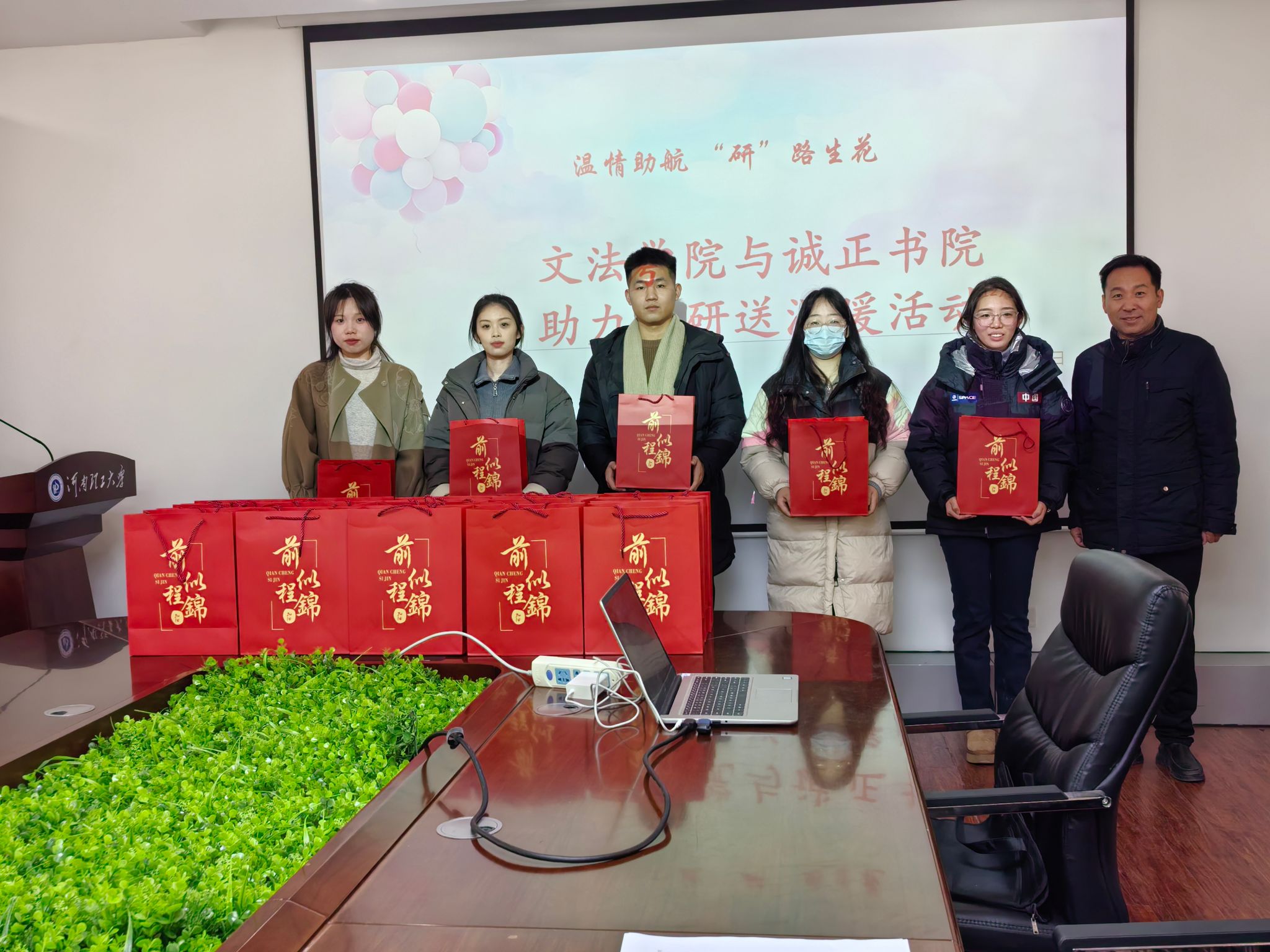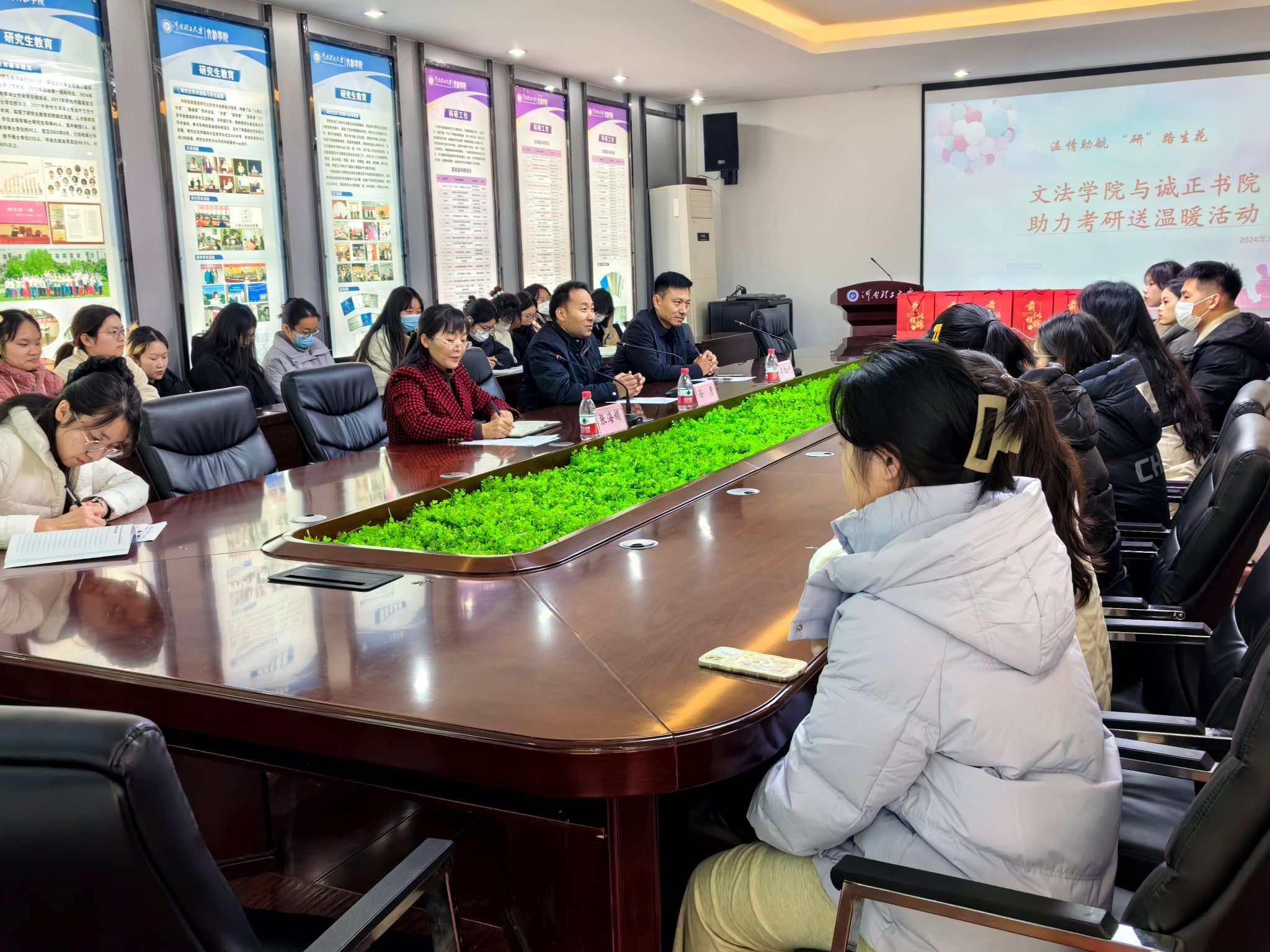 12月6日下午,为了帮助考研学子缓解备考压力、坚定考研信心并积极冲刺迎考,诚正书院与文法学院携手举办了“温情助航‘研’路生花”考研慰问活动。诚正书院党委书记、院长孙彦、诚正书院党委副书记李旭升、文法学院辅导员任美斌和2021级考研学生代表参加活动,活动由文法学院副院长张海媚主持。
