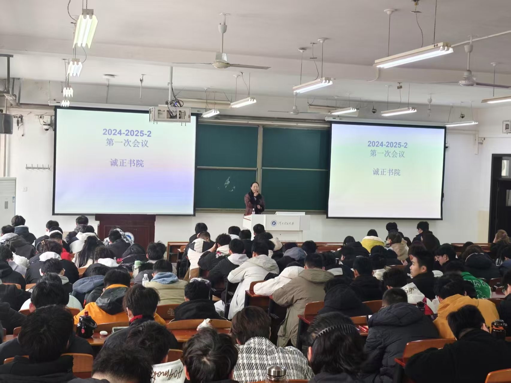 新年胜意,再续新章。为了迎接新学期的到来,明确新学期目标,激发同学们的学习热情。2月18日下午,诚正书院第二学期第一次班会于河南理工大学三号教学楼3103教室隆重举行,由诚正书院党委副书记王新建主持。同学们积极参与会议,并进行了热烈讨论,拉开了新学期、新征程的帷幕。