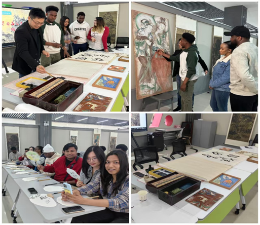 2025 年 3 月 19 日下午,河南理工大学诚正书院在明德楼公共艺术展览馆举办了一场中国书法绘画普及活动,旨在让留学生深入了解中国传统文化,感受书法与绘画的独特魅力。
