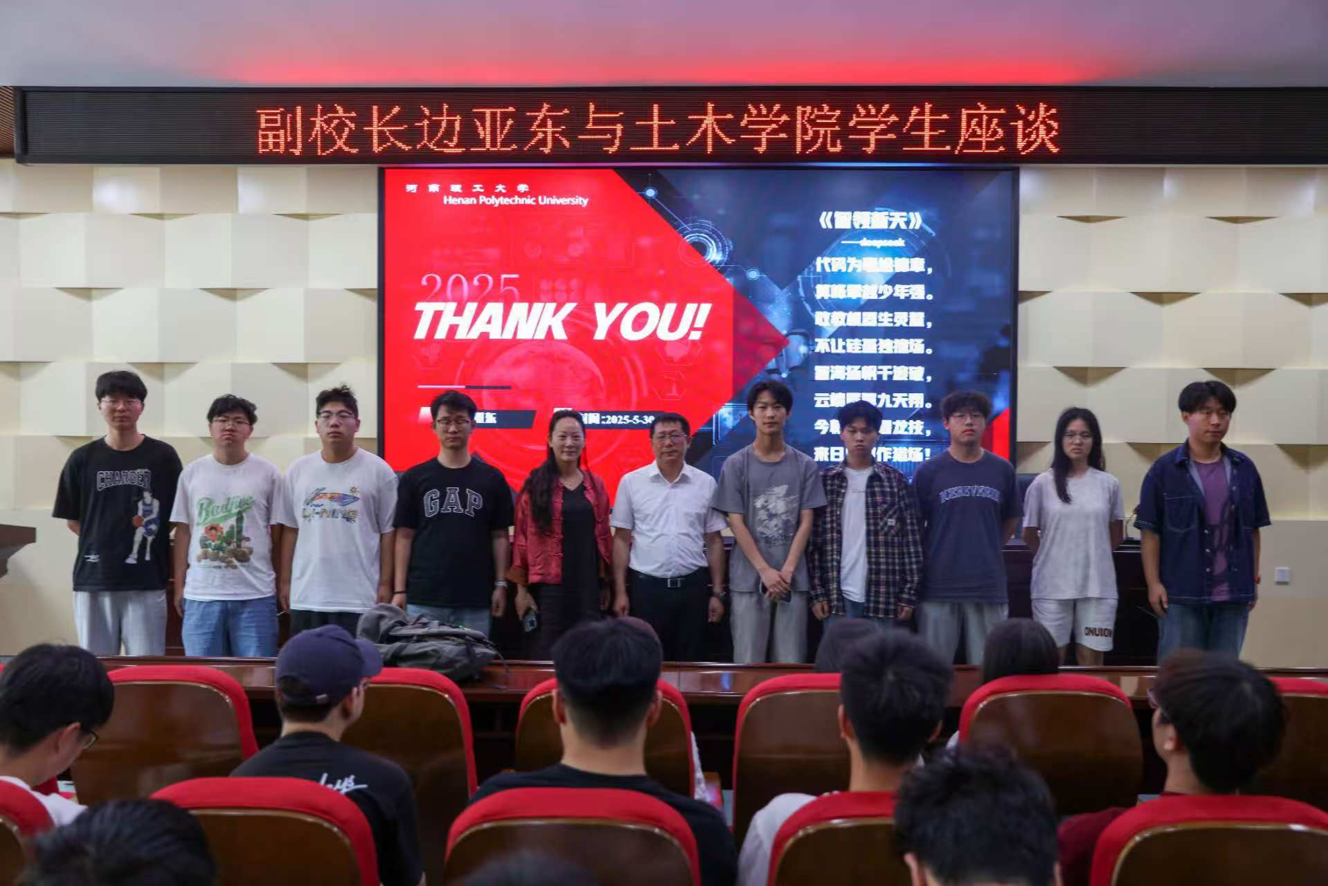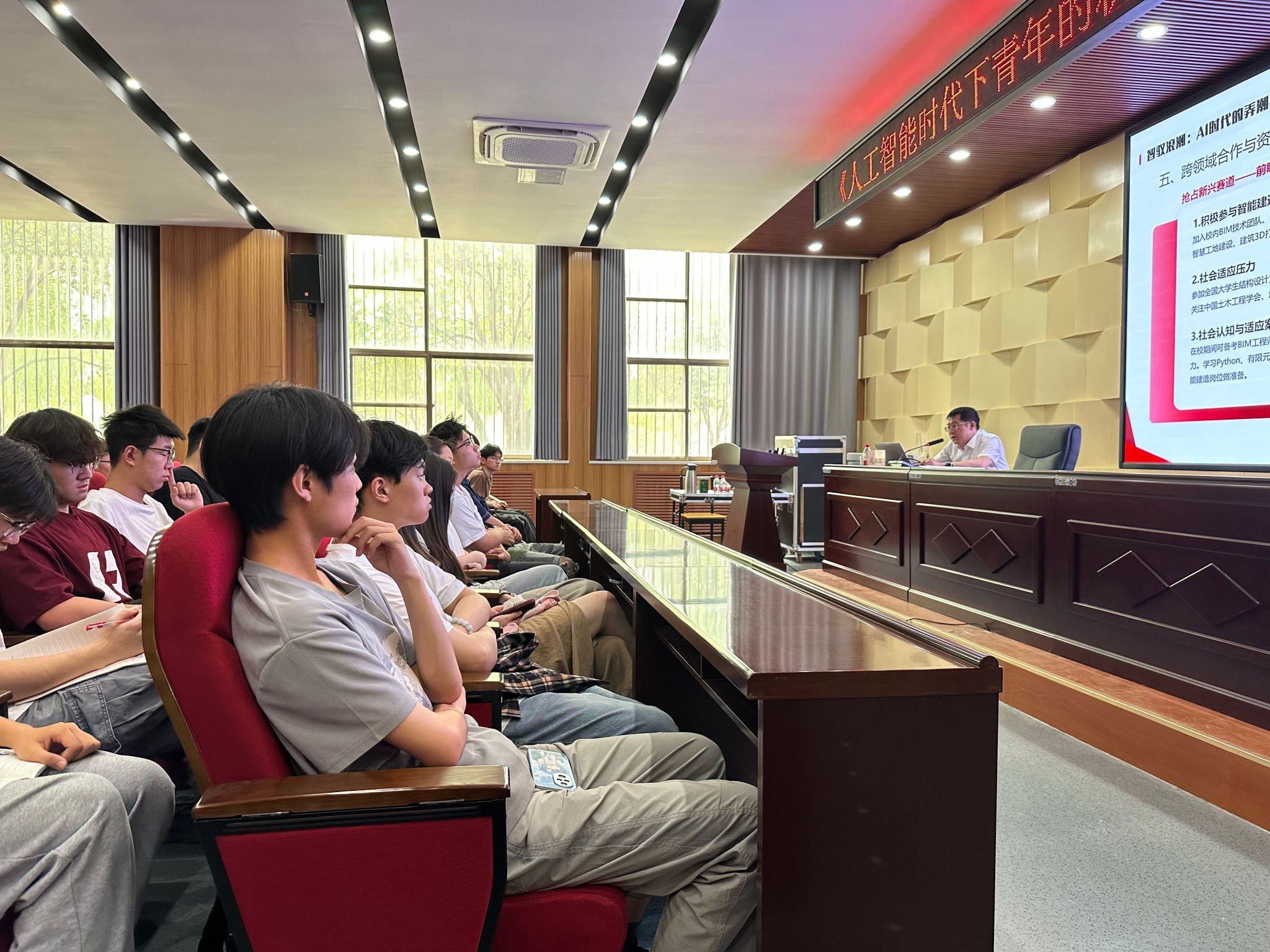 为了应对人工智能时代带来的育人挑战,培养兼具科学素养与正确价值观的时代新人。5月30日上午,河南理工大学于土木学院101学术报告厅开展了“人工智能时代下青年的机遇与挑战”专题思政课。边亚东副校长担任主讲人,王新建书记出席此次思政课,诚正书院及土木学院学生代表参与本次专题思政课。
