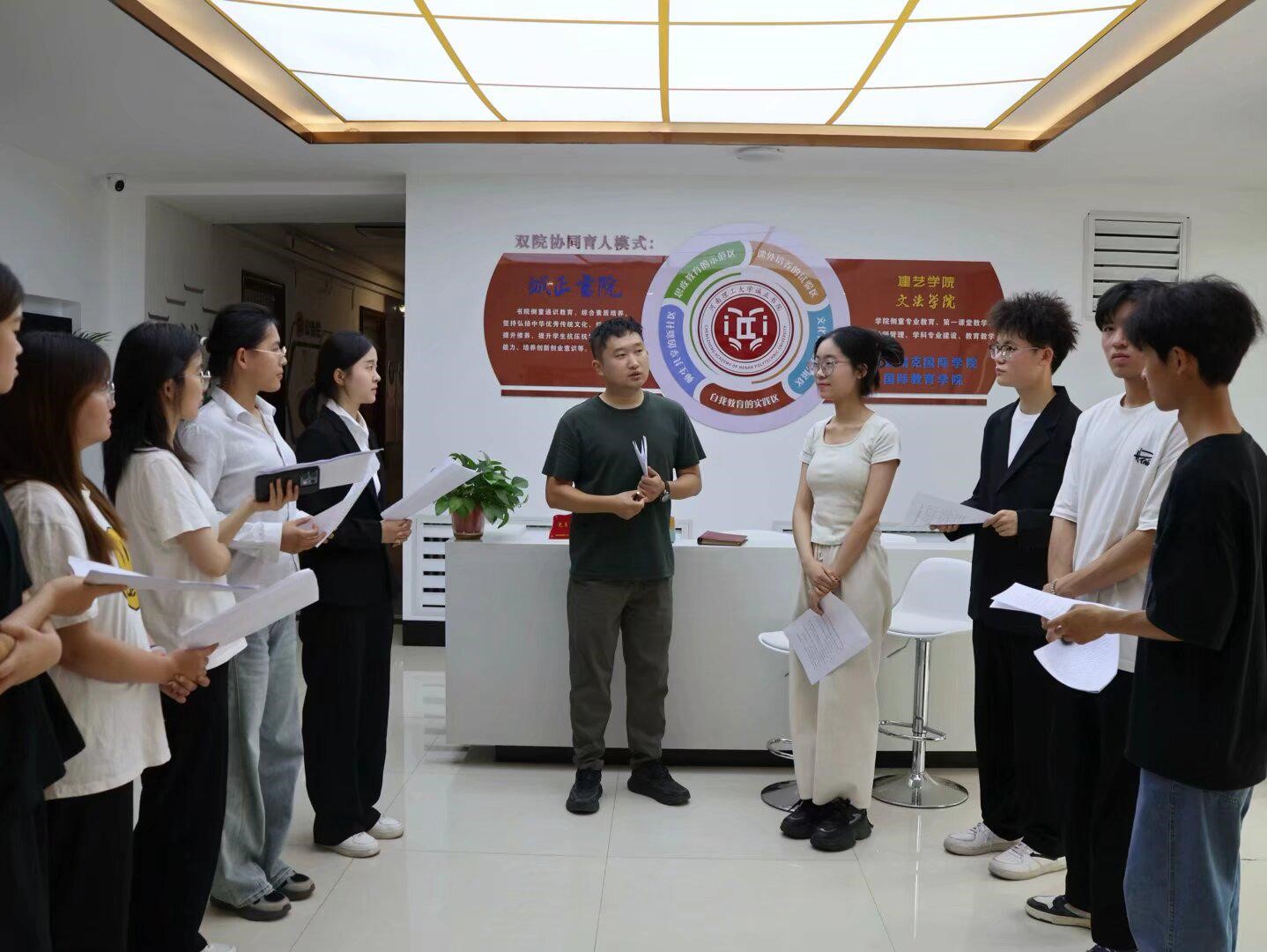本次大赛创新采用“双环节考核”机制。讲解员随机抽取书院功能室进行实地讲解,围绕空间布局解读书院内容,以清晰逻辑、自信表达与亲和微笑,展现扎实专业功底。“互动问答”环节中,校史馆讲解员赵淑颖对书院初心使命、文化内涵、活动室预约流程等内容进行提问,考察知识储备与临场应变,现场精彩应答不断。