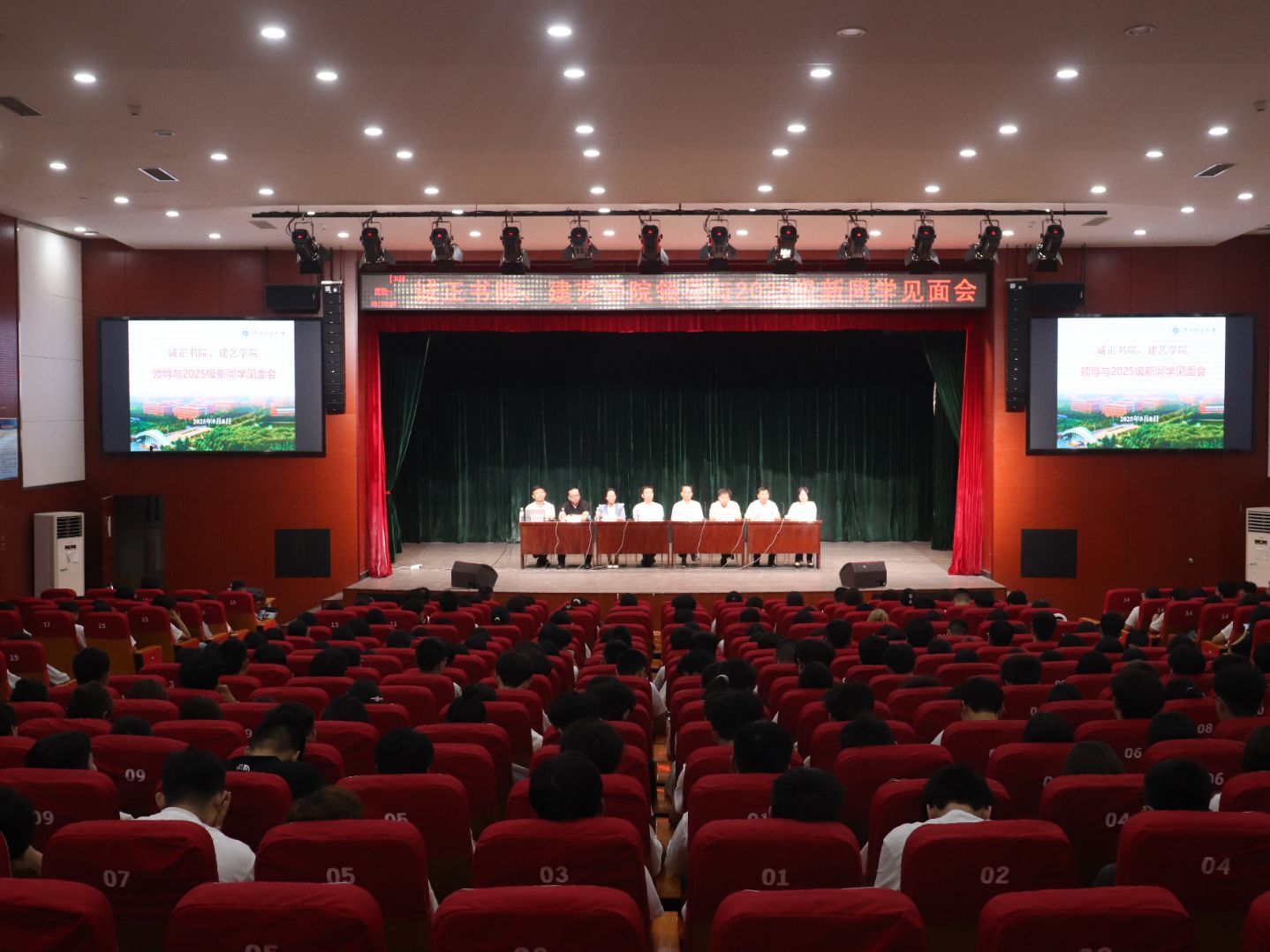 为加强2025级新生思想引领,帮助新生快速适应校园生活,明确学习目标,树立正确价值观,诚正书院于9月8日下午在北校区小礼堂举办诚正书院、建艺学院领导与2025级新同学见面会。诚正书院、建艺学院领导班子,各系主任及新生辅导员参加会议。会议由诚正书院党委副书记李旭升主持。