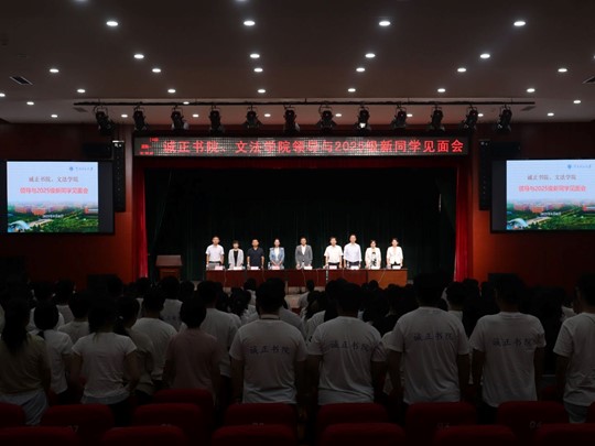 为帮助新生加强对诚正书院及专业学院的认知、了解校史校情、明确自身定位、确立发展方向,9月8日下午,诚正书院于9月8日下午在北校区小礼堂举办诚正书院、文法学院领导与2025级新同学见面会。诚正书院、文法学院领导班子,各系主任及新生辅导员参加会议。会议由诚正书院党委副书记李旭升主持。