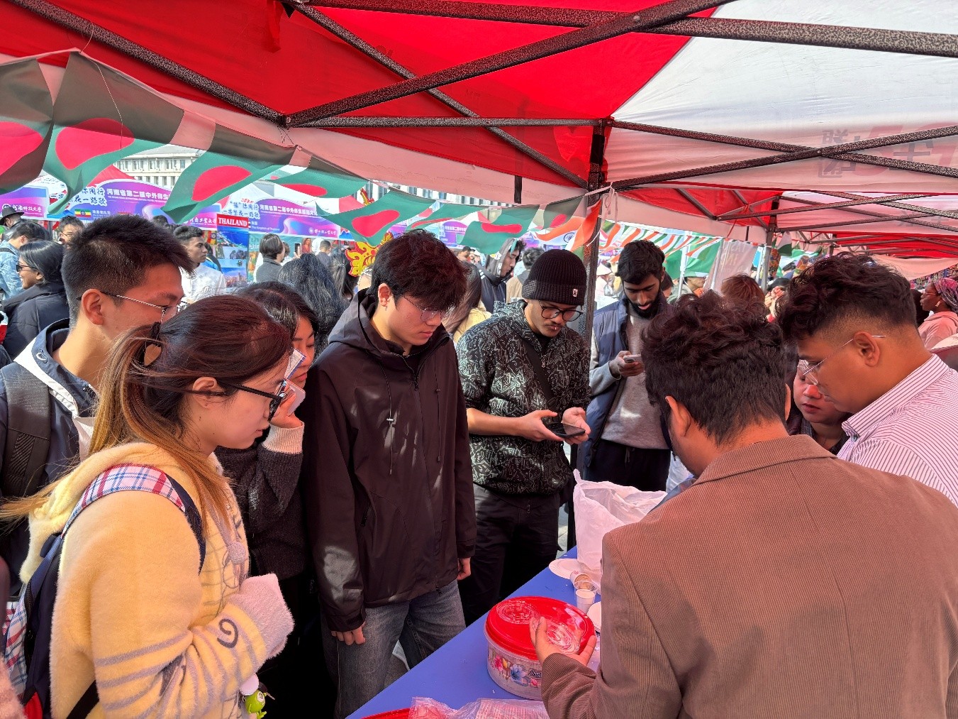 活动中,诚正书院推选的孟加拉美食在“味蕾盛宴市集”活动中化身为跨文化交流的生动课堂。在书院教师的悉心指导下,三名来自孟加拉国的留学生——Esha Mony、Md Estihad Faysal和Md Shahriar Haque,为师生们带来了地道的传统美食:风味独特的夫恰卡、香气浓郁的香料干炖牛肉以及口感醇厚的孟加拉米布丁。他们熟练运用中英双语,娓娓道来每道美食背后的食材配方与深厚文化寓意,不仅征服了在场师生的味蕾,更引发了深入的文化共鸣与交流,展位前始终人流如织。