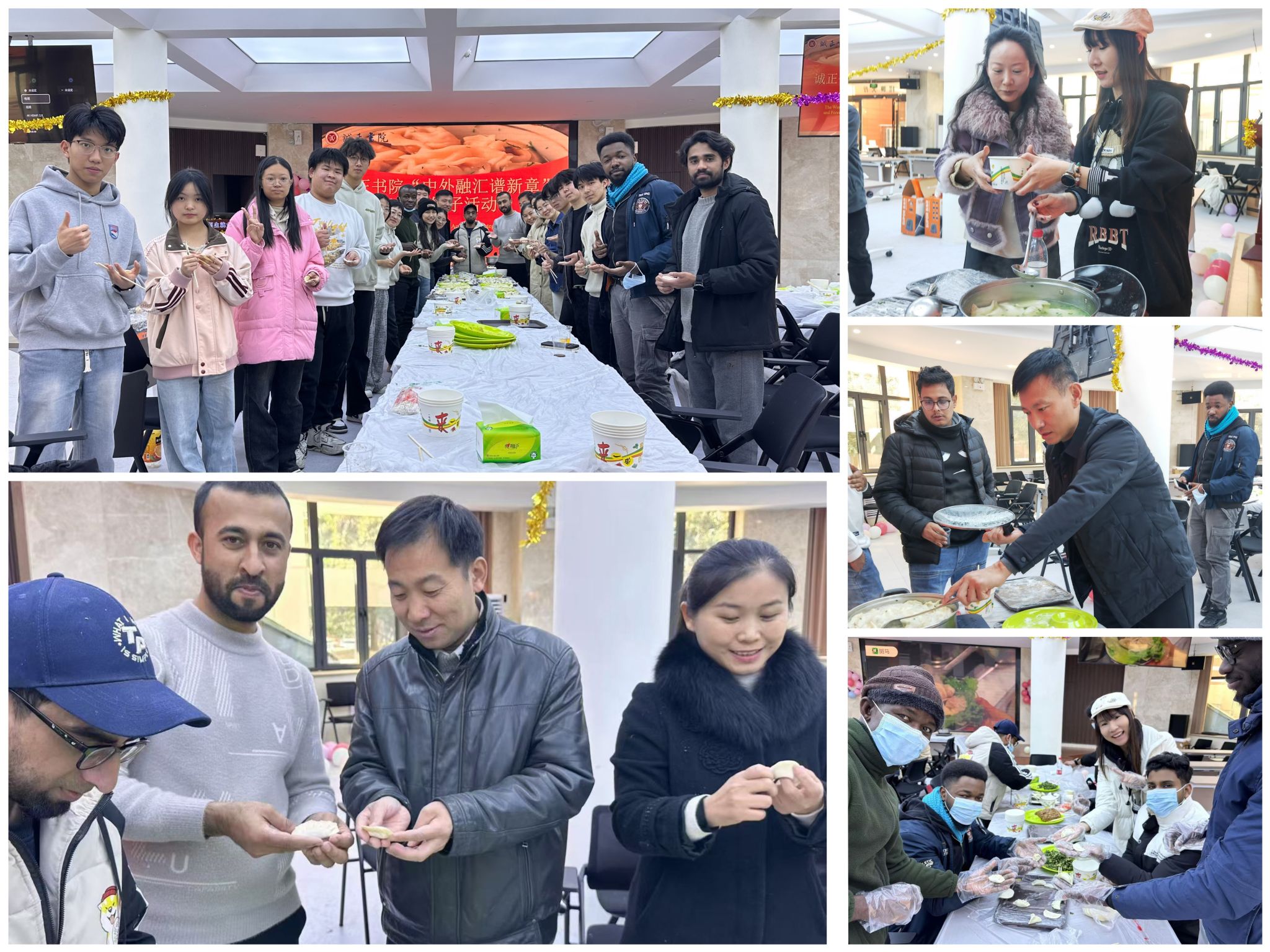 冬至时节,寒意正浓。为传承与弘扬中华传统节日,促进中外文化交流融合,营造多元文化和谐共生的良好氛围,加深中外学子对不同文化的理解与尊重,12月20日上午,诚正书院在南校区招生就业大厅举办了“中外融汇谱新章”冬至包饺子活动。诚正书院党委书记、院长孙彦,党委副书记王新建、李旭升等领导出席活动,诚正书院全体老师及中外学生代表共50余名师生参加此次活动。