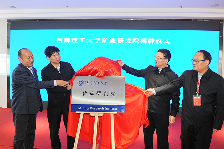 郭金刚、刘银志、杜波、杨治国共同为河南理工大学矿业研究院揭牌