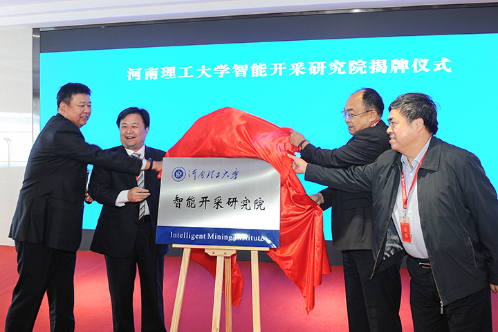 付祖冈、韩晓东、李炜、赵善扬共同为河南理工大学智能开采研究院揭牌