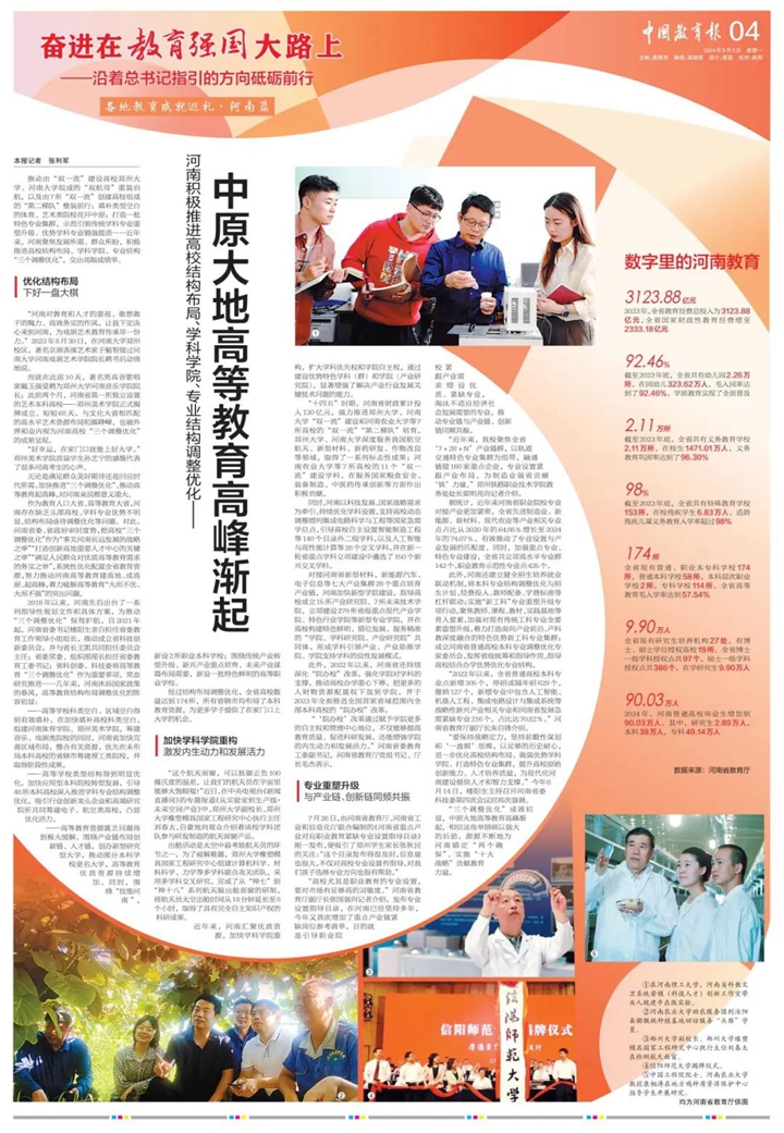 (通讯员:张健)近日,在新媒体矩阵组图和《中国教育报》的核心版块对我校全国高校“黄大年”式教师团队负责人、河南省科教文卫系统劳模(科技人才)创新工作室带头人、中心团队负责人魏建平教授进行宣传报道。
