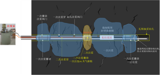 该技术创新性揭示了巷道-钻孔双重卸压下围岩裂隙演化规律渗流特征,发明了基于气体漏失量法的抽采钻孔合理封孔深度原位测定技术及装备;基于“相似相溶”的原理,研制了以钻屑为基料的新型煤基浆液绿色封孔材料,实现钻孔密实封堵;首创了裂隙煤体注浆变质量渗流模型,阐明了煤体注浆浆液流动规律,揭示了注浆封孔堵漏降渗机制,堵漏特性提高了23.5倍;研发了多级承压钻屑回填技术及装备,突破了多级长效固结封孔技术瓶颈;通过技术及装备集成开展了专利许可转让及推广应用,有效提高了瓦斯抽采效果,为煤层瓦斯的高效开采与利用提供理论基础和技术支撑。