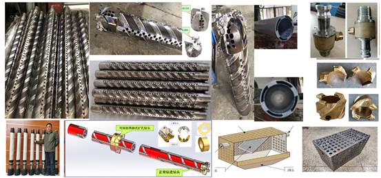 1)形成了“盾护卸压钻进”理念思想,提出了盾护卸压钻进技术体系。“盾护泄压”是指通过直径略小于钻孔的钻杆动态支护钻孔,防止塌孔现象发生;及时排出高应力区孔内钻渣而使其压力下降,以减小钻进阻力和防止抱钻、卡钻现象发生;同时减小钻杆扰动幅度和钻孔偏斜。团队先后提出“突出煤层盾护卸压钻具及孔外封闭出渣系统”、“深部煤层双动力双管盾护卸压流体排渣钻具”、“突出煤层双动力盾护卸压螺旋排渣组合钻具”等11项发明专利。