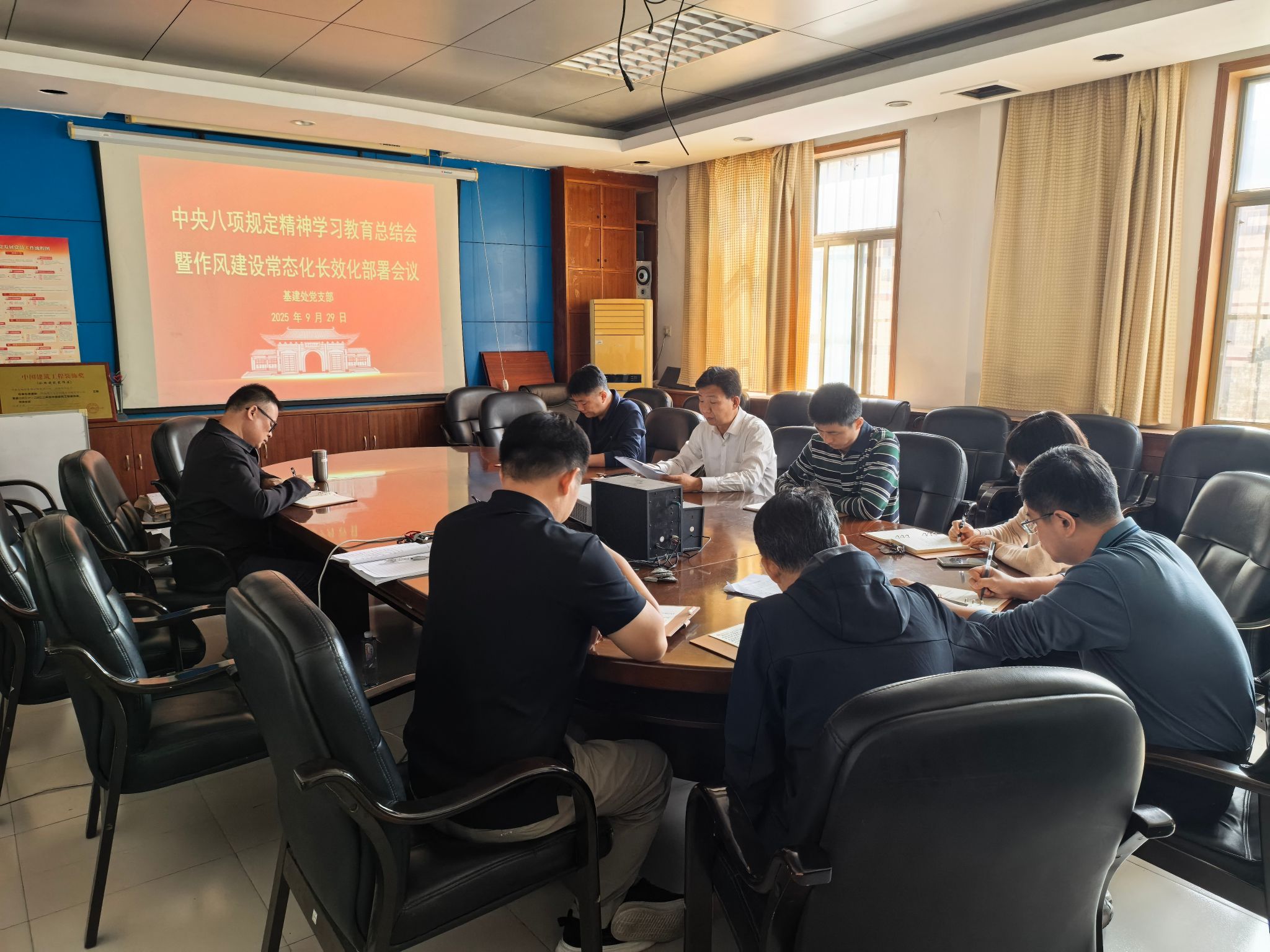 9月29日上午,基建处党支部在处三楼会议室组织召开深入贯彻中央八项规定精神学习教育总结会暨作风建设常态化长效化部署会议。会议全面总结了前期学习教育活动取得的成效与经验,并对下一阶段持续推进作风建设走向常态化、长效化进行了动员和部署。